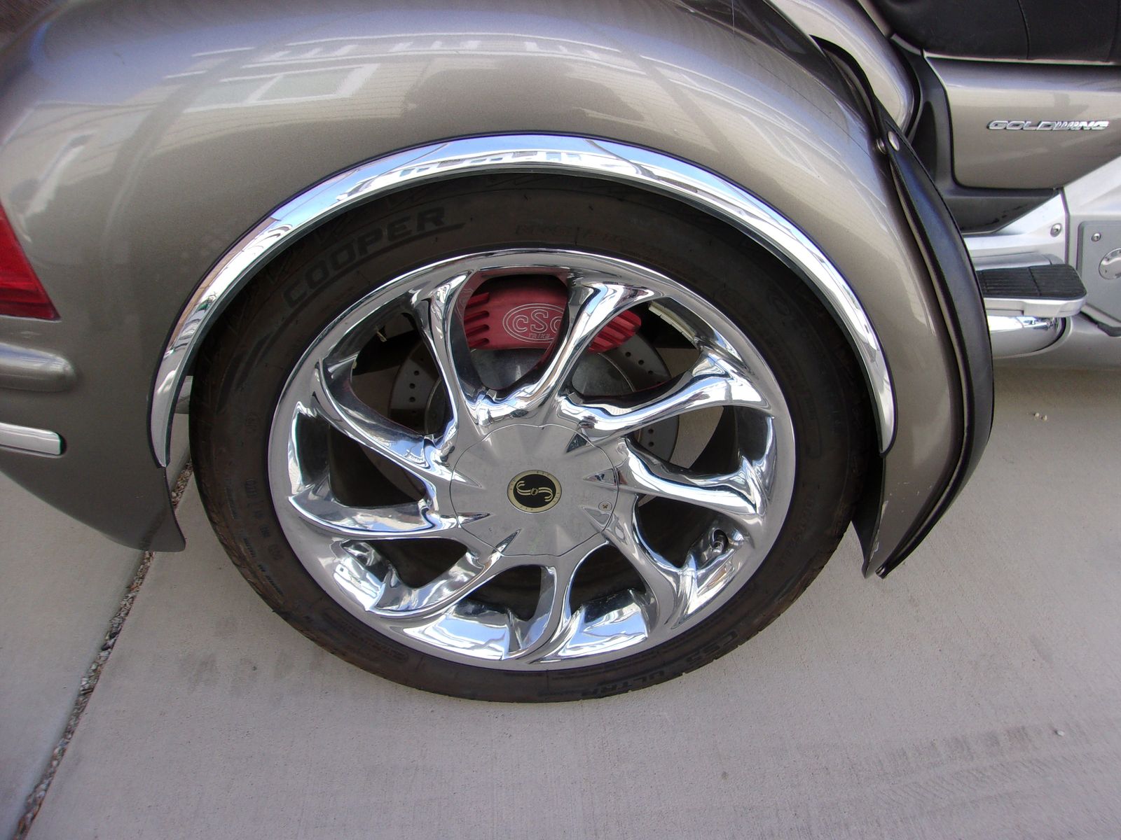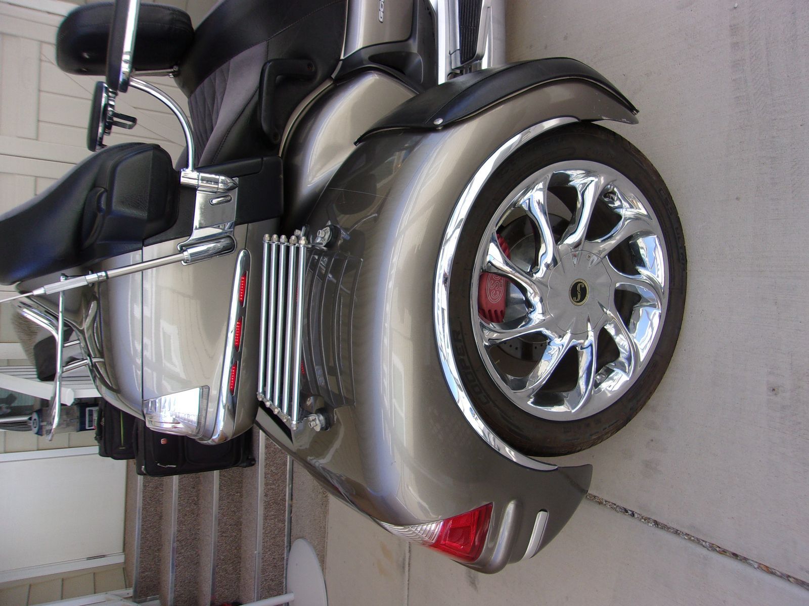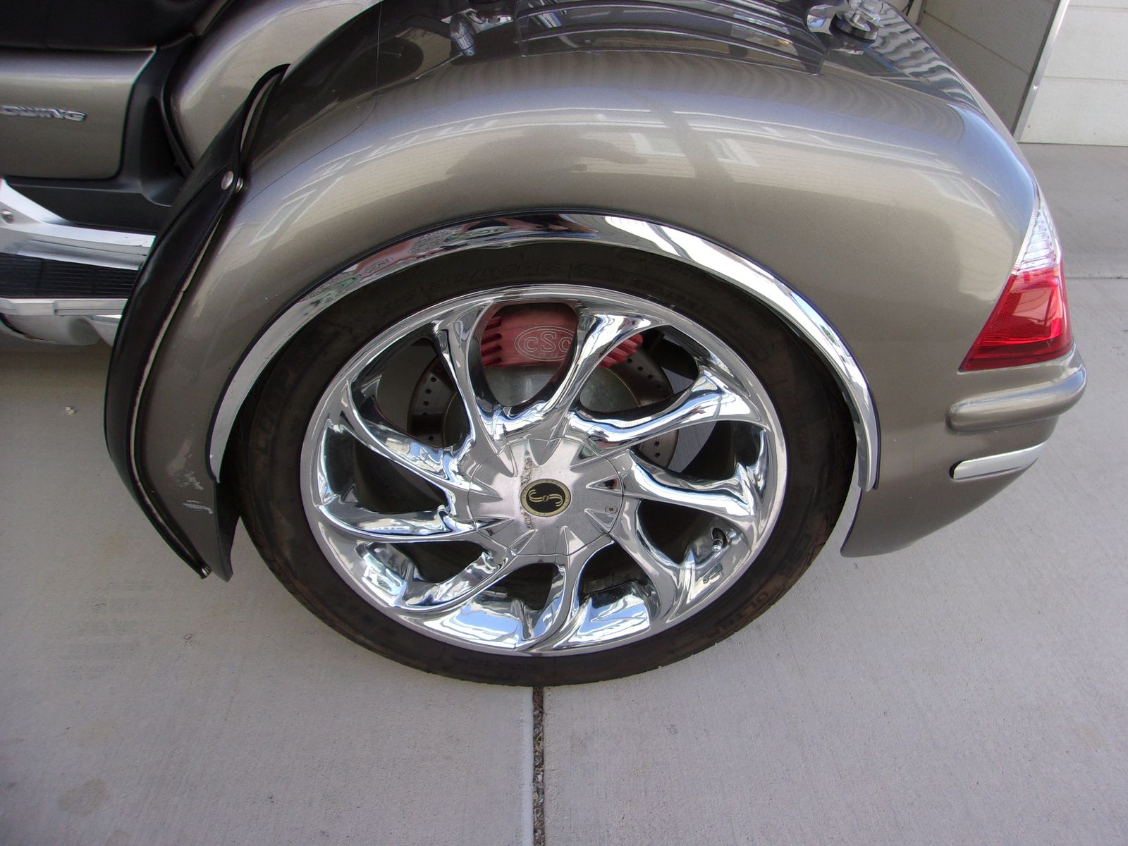 TRIKE KIT HAS CHROME WHEELS CHROME WHEEL WELL TRIM, AND FENDER RACKS FOR EXTRA SMALL CARGO