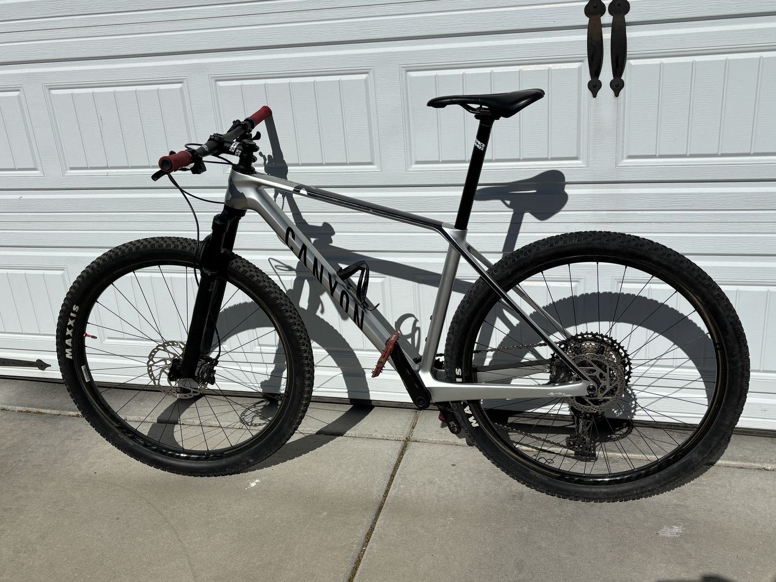 ApplePayCarbon frame, carbon wheels, with awesome components. Frame size: Medium. 29er race rocket. This is the perfect bike for mountain bike racing--it is everything anyone needs to drop the hammer. Only used one season by my son. Canyon describes it as "A seriously fast, seriously capable XC carbon hardtail comining the World Cup-inspired Exceed frame with premium components and wheels. Front fork travel: 100 mm. Weight: 23.95 lbs. Color: Quick Silver. Components: