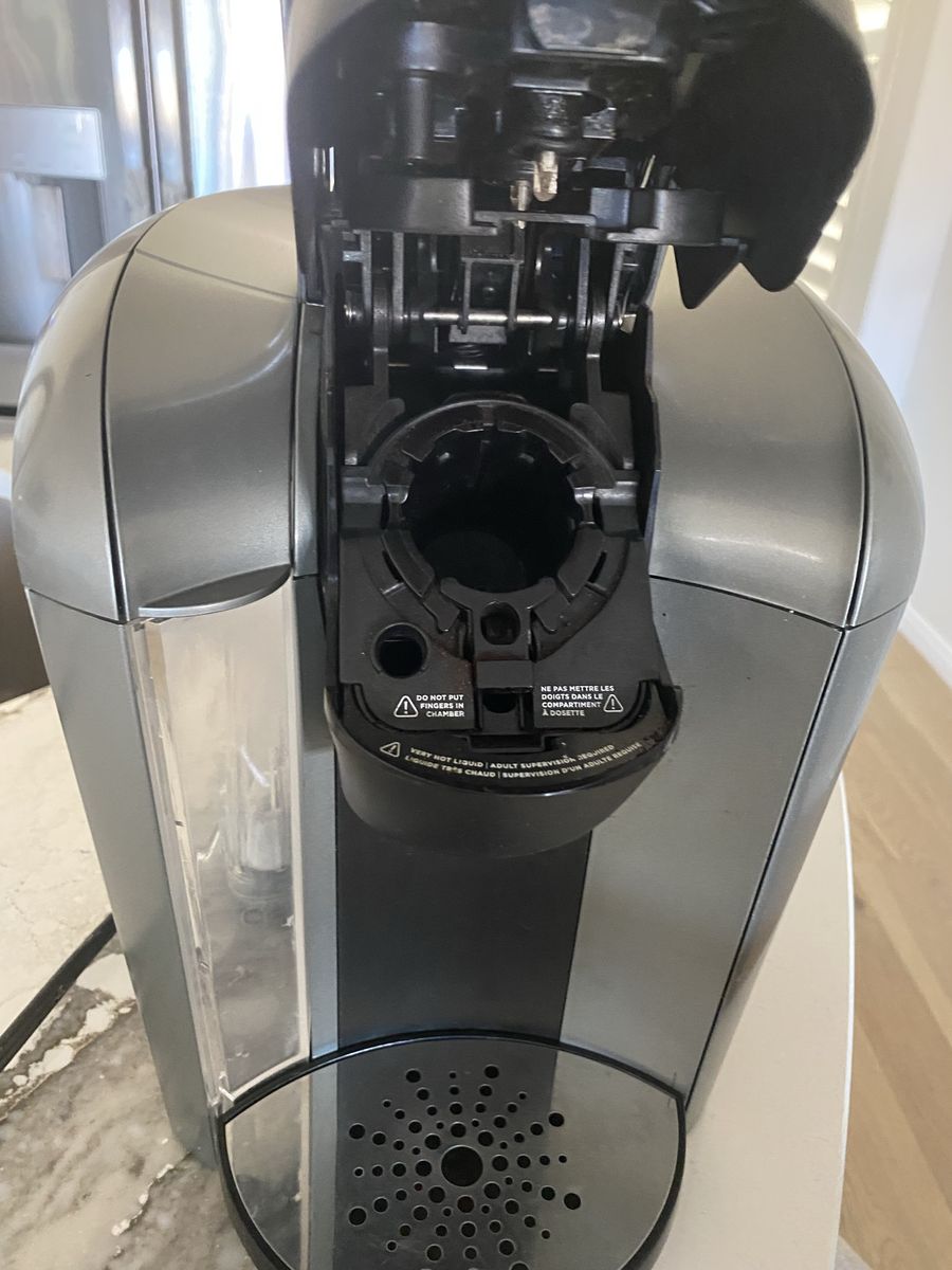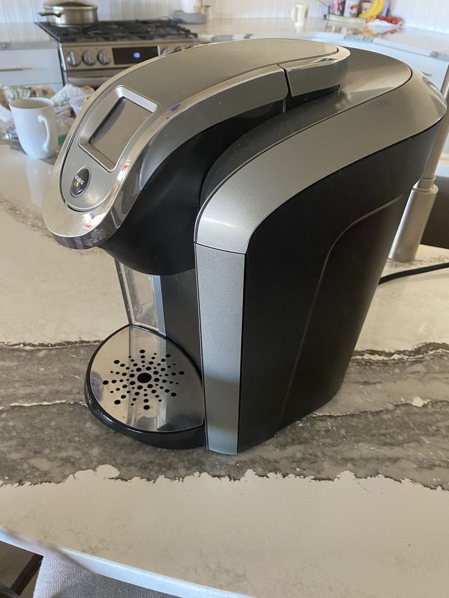 Large capacity and in good working order Gray black in color. Great to have hot water on hand and for brewing, coffee and tea pods.