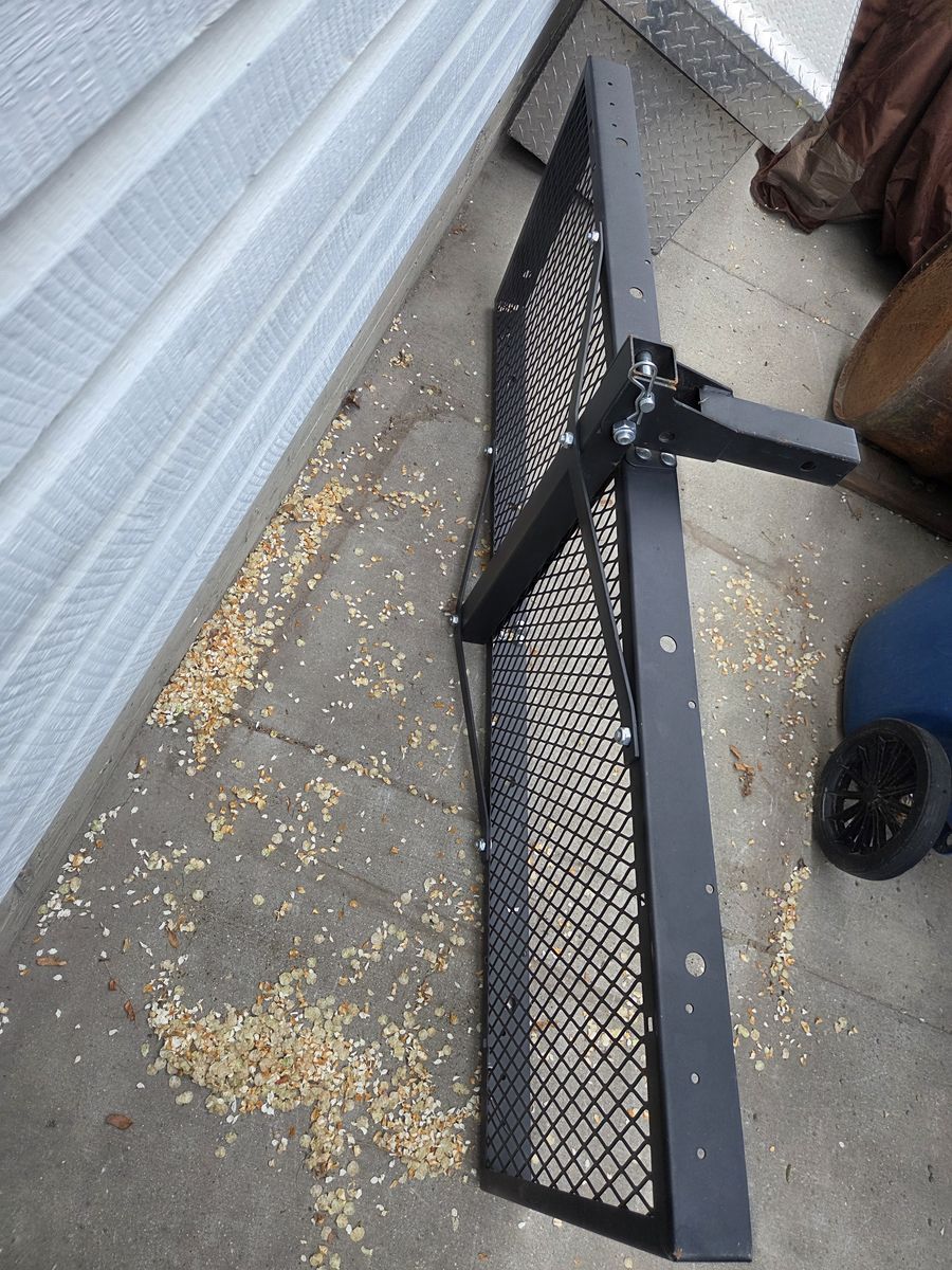 Black steel hitch mounted cargo carrier