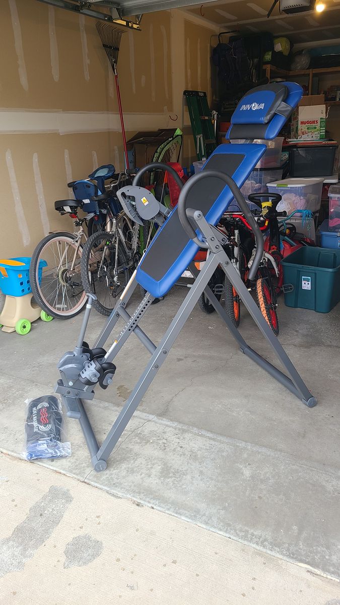 VenmoInversion table has been used only once or twice without the removeable massage+heat pad, which is in completely new condition. We don't have room for it, but it is in new condition and is already assembled (trust me, this will save you at least 1-2 hours of work). I've copied the an in-store description of it below for reference: