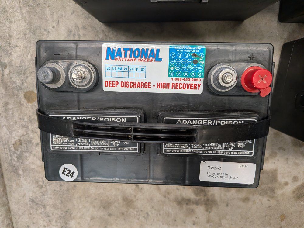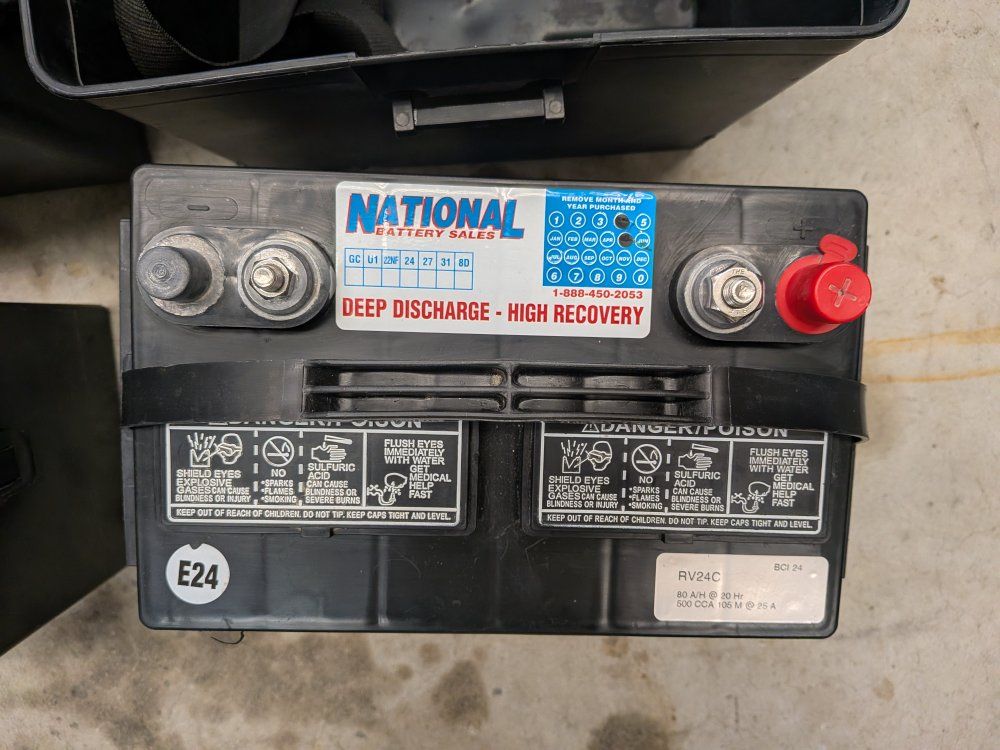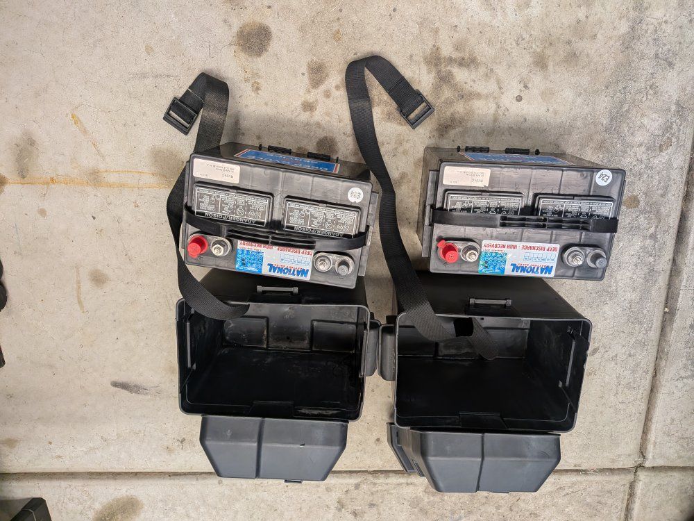 VenmoTwo (2) deep cycle RV batteries with two (2) boxes and two (2) straps. These were purchased in May 2024 so they still have plenty of use left in them. We used them a few weeks ago and they worked just fine. I routinely check the water level and top off with distilled water. I replaced these batteries in my trailer with 6 volt batteries because they last a bit longer when we go dry camping.