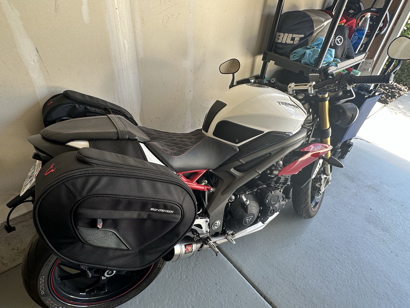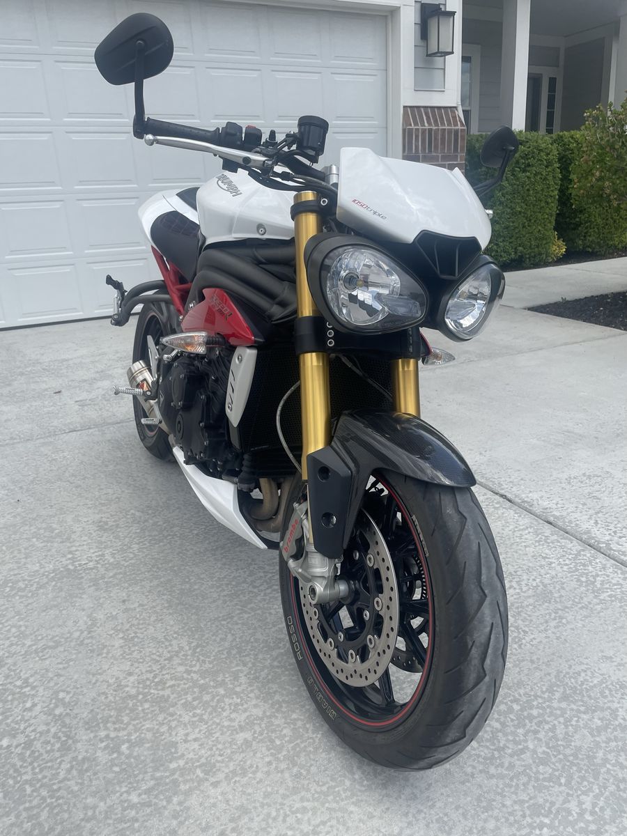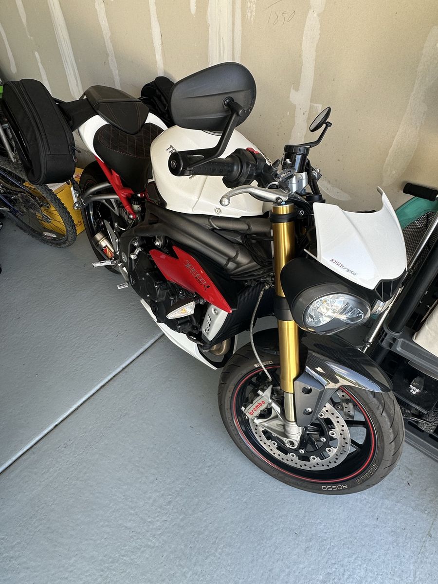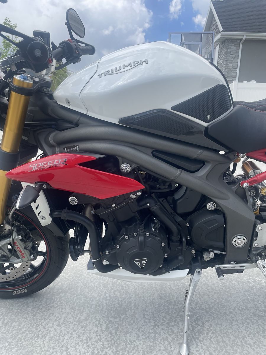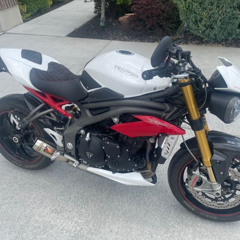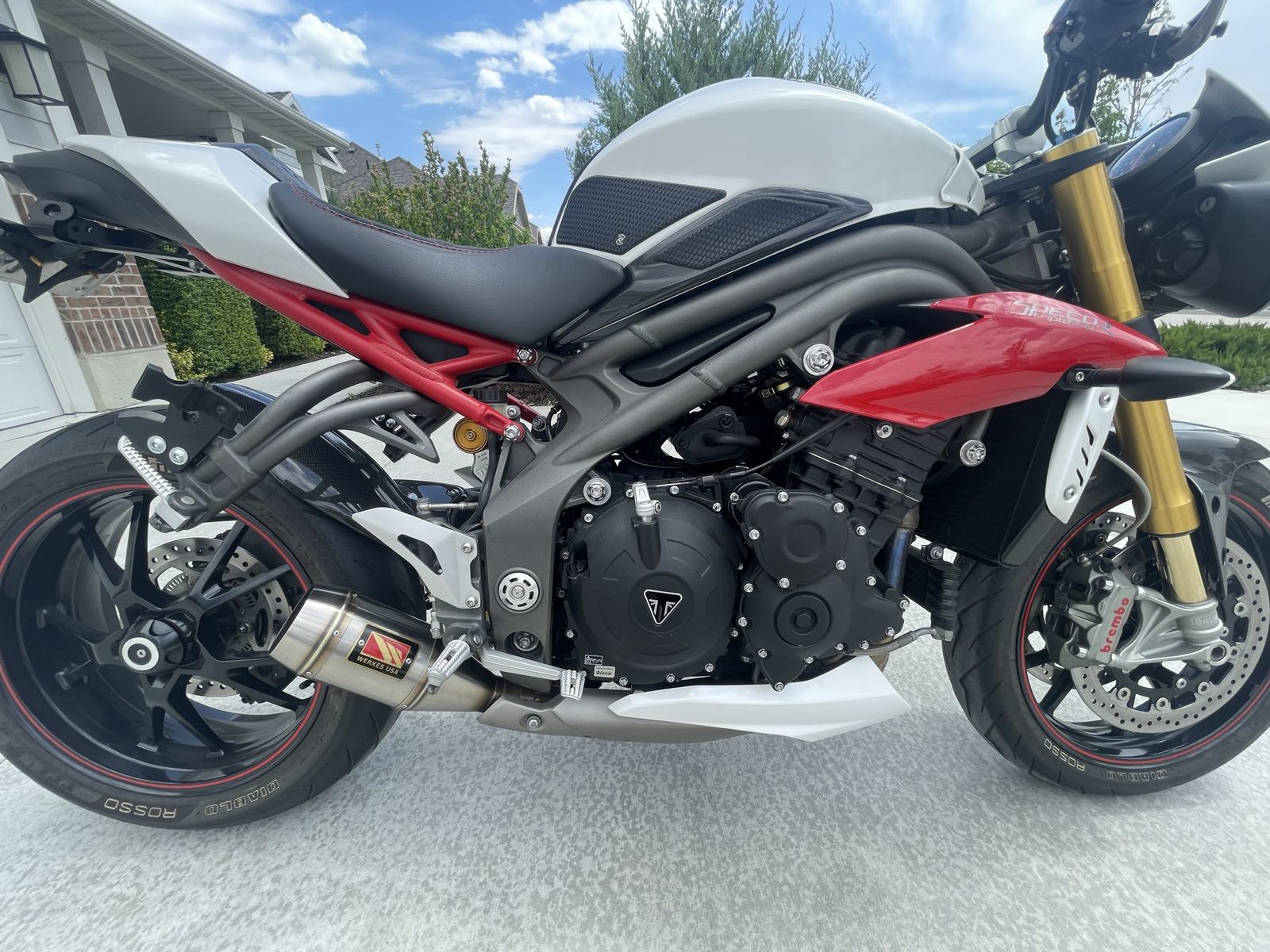 Up for sale is a clean 2016 Triumph Speed Triple R. Best color combination of this model. Second owner bike, I’ve put less than 1k miles since I purchased. 17k miles total. Bike comes with Werkes exhaust as well as dual original exhaust. Custom seat. Saddle bags included. Carbon fiber parts throughout. Heated handle bars. ECU was flashed with the proper map. Front/rear triumph led blinkers, and bar end mirrors. Bike always dealer service, with records available. Pirelli Diablo Rosso tires were just replace a few months ago and have under 200 miles on them. Brakes are good to go, recent oil change and chain service. The R model includes, traction control, ABS Brakes, Quick Shifter, Ohlins suspension, Brembo brakes, among other upgrades from prior models. Clean Bike, no leaks, no bends, etc. Garage Kept.