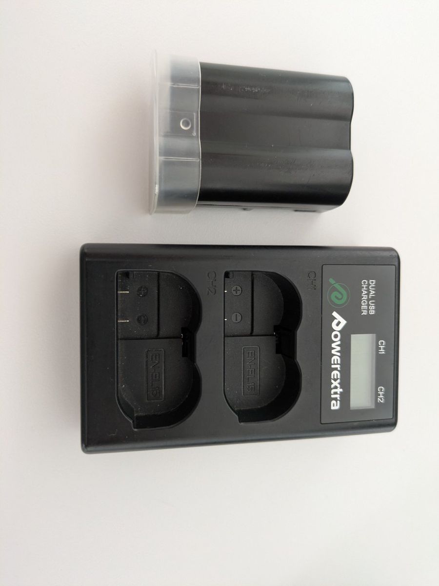 Nikon compatible DSLR battery with charging dock. I sold my DSLR a while back and just came across this extra battery and charger. Works perfectly and holds a charge similar to Nikon branded EN-EL15 battery. Feel free to bring your camera and test it. Price is obo