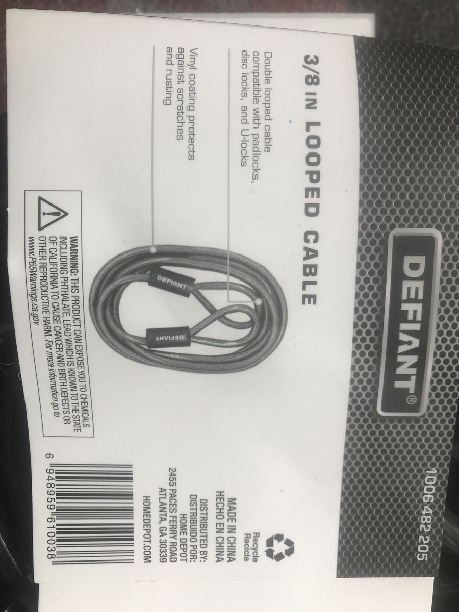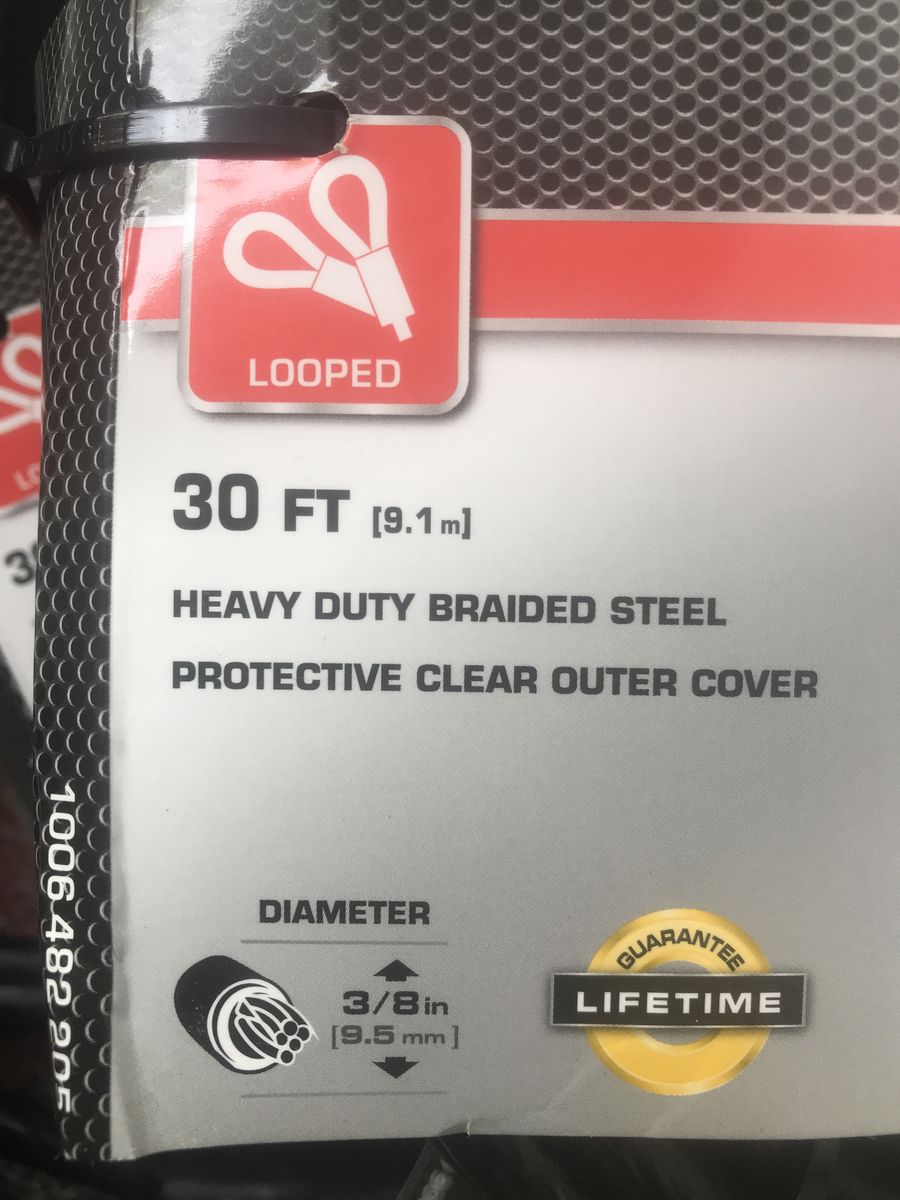 Lock up your valuables with this security cable with looped in and three-quarter inch thick braided steel cable
