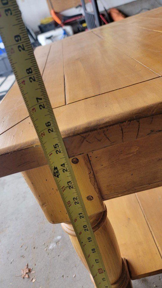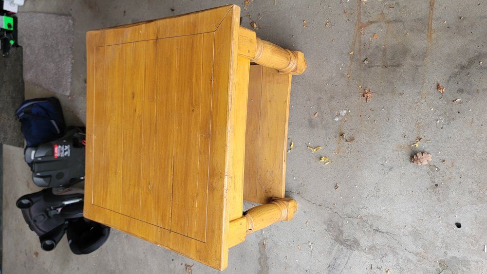 VenmoMedium sized wooden table. 34" x 34" with 25" height.