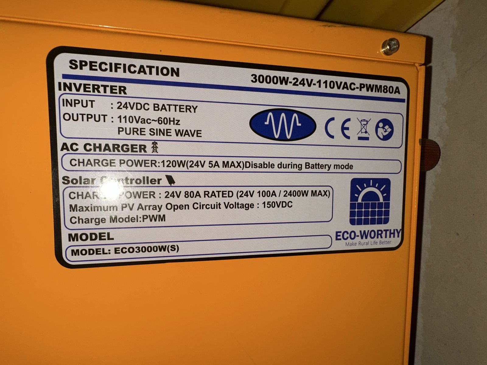 Venmo$125 for the inverter. large stacked batteries Normally $700, I can sell you one for $400 or two for $700. 25.6V$350. 2 12V for $300 connect them together you get 24V. 4 panels ranging from $75 to $100 each. OBO