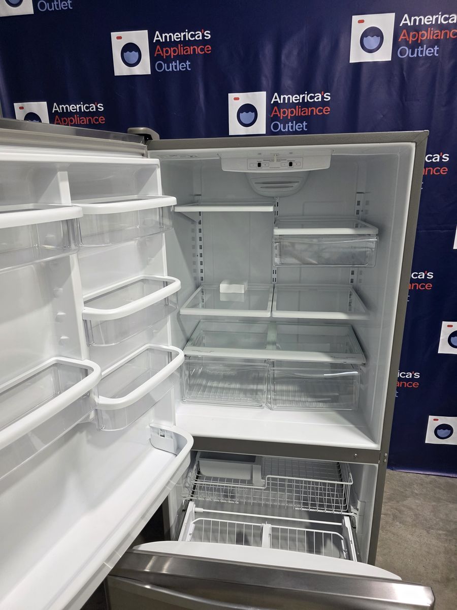 GooglePayWhirlpool - 22 cu. ft. Bottom Freezer Refrigerator in Stainless Steel with Spill Guard Glass Shelves