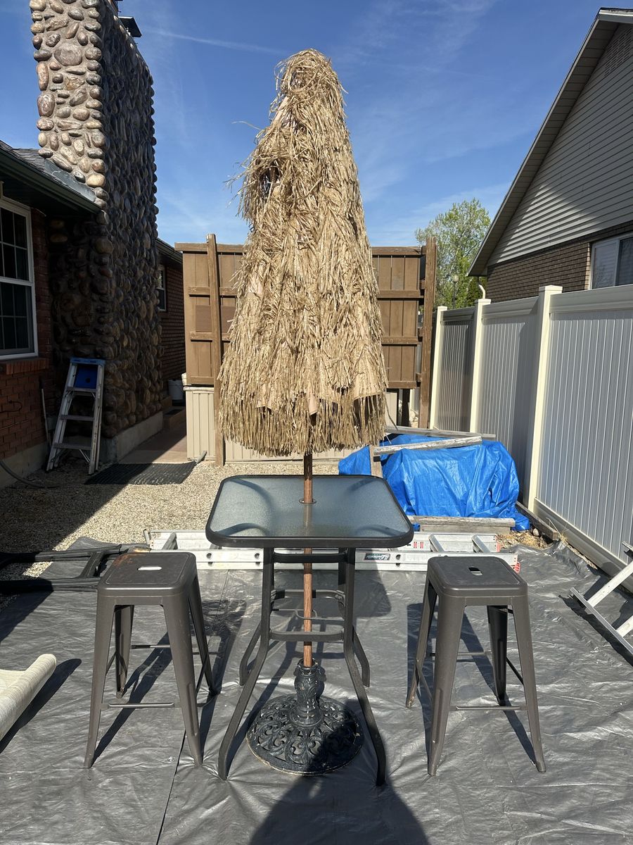 VenmoSmall outdoor Table with 2 Chairs and Tiki Umbrella. One of the chairs could use a little sanding and paint on the seat. Other than that it’s in great shape. If interested or you have questions, text, message or call John at 801-678-5503