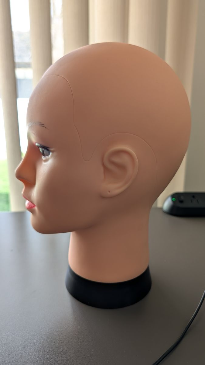 VenmoThis mannequin head can be mounted on a post. It is bald and I guess you put wigs on it to style them. Could also work as a wig holder for that matter.