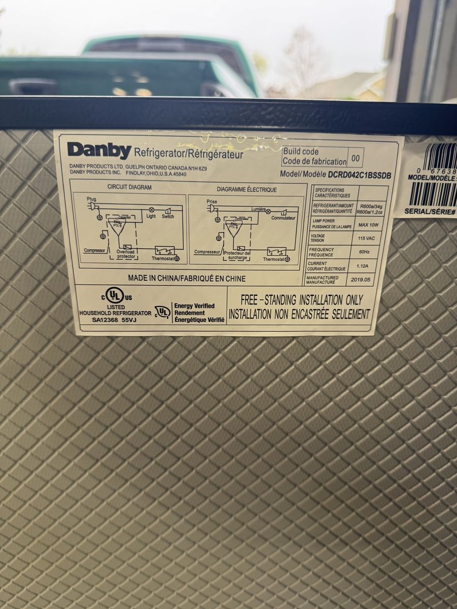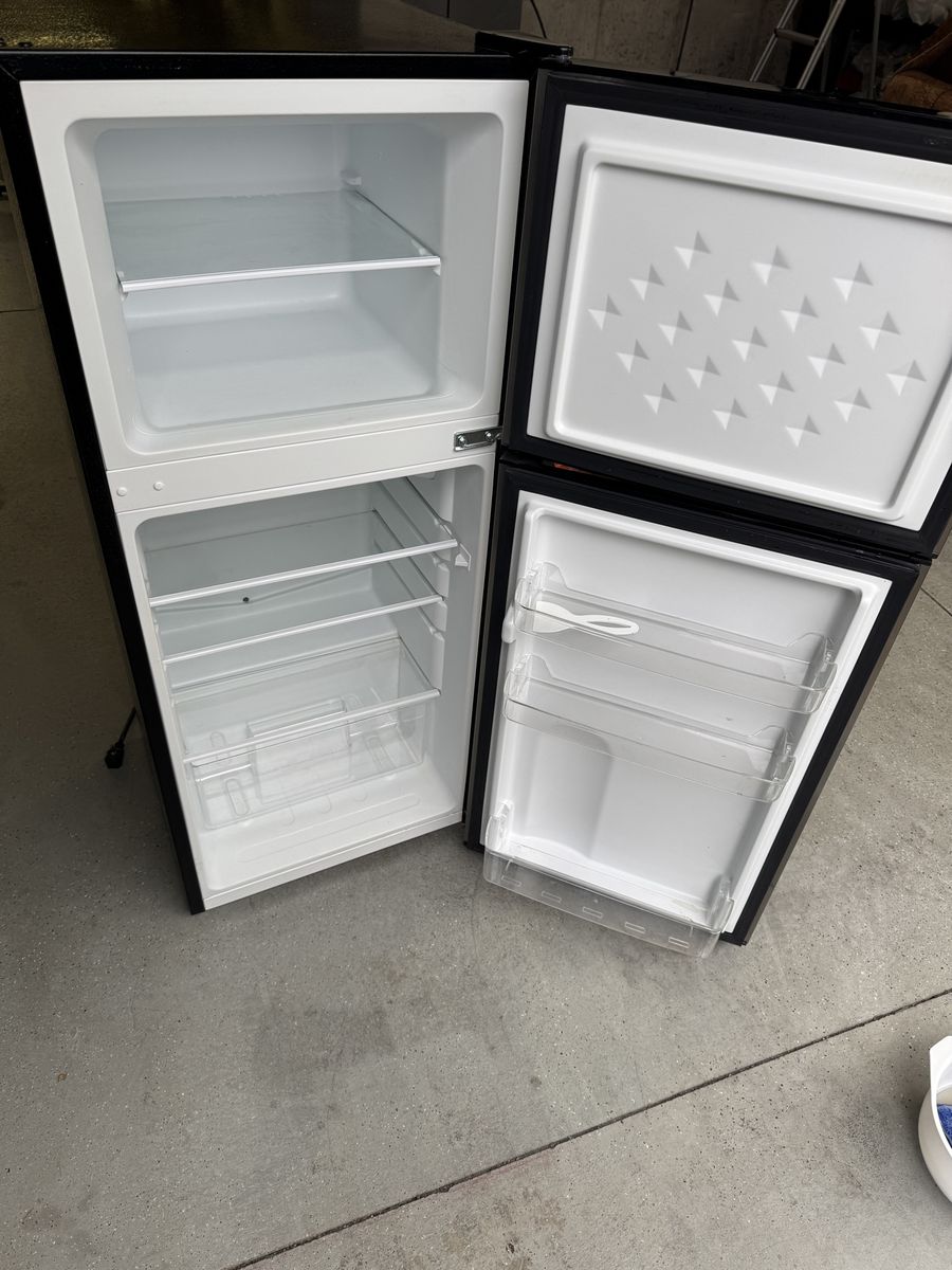 2019 mini fridge and freezer. Works great. Small dent in freezer door.