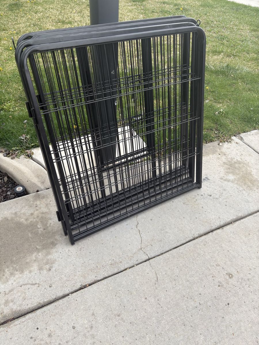 8 panels each are about 31” high and 30” wide. With a gate.