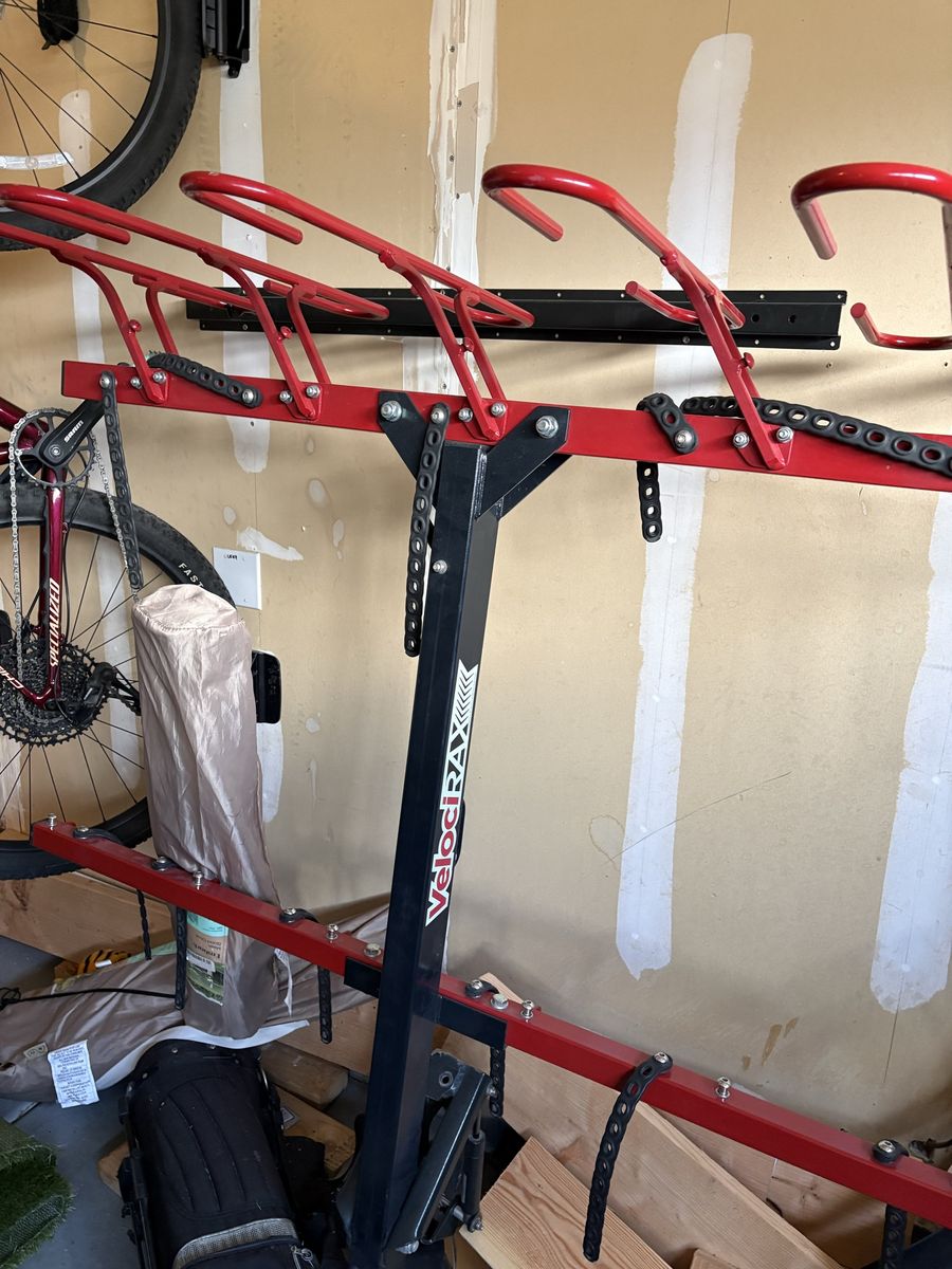 This is an incredible bike rack! Kids were in NICA and we are now moving out of state. Great condition. Has internal bike lock. Also includes garage storage rack.