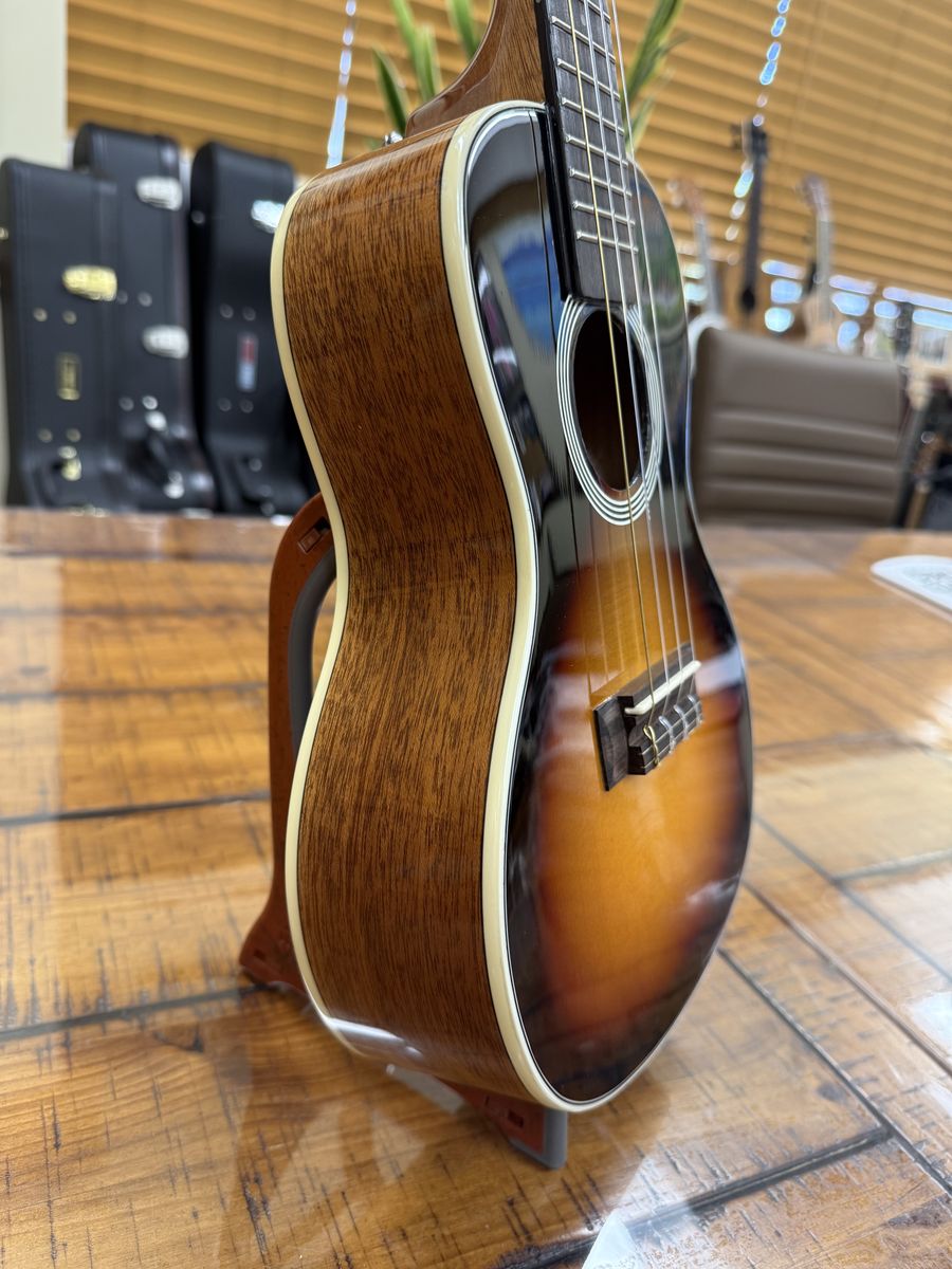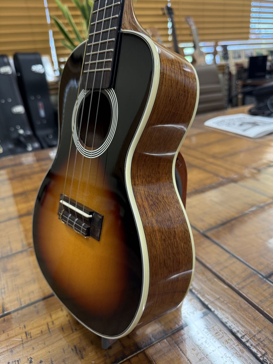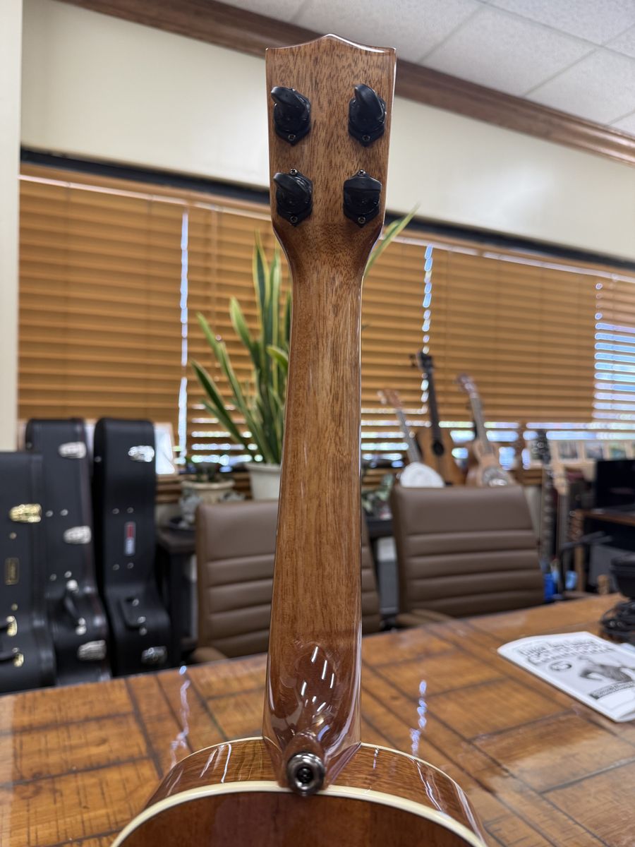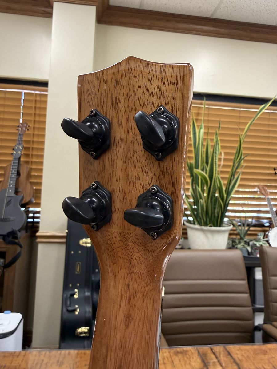 I put on some Pepe Romero strings with a wound low G and, coupled with the spruce top, it really makes this thing sing. I love the sound of it. Very loud and punchy for a concert size ukulele. I also installed strap buttons.