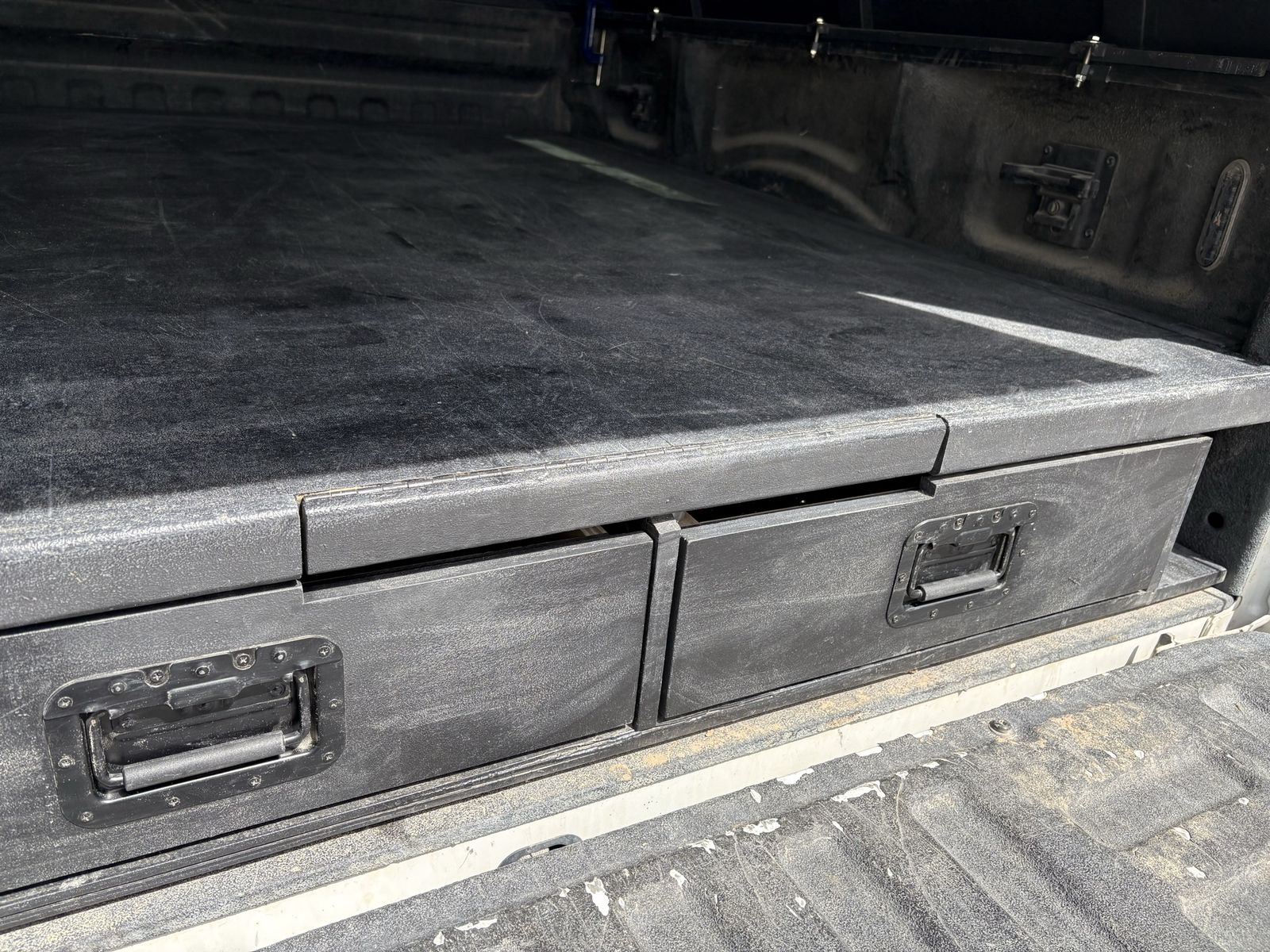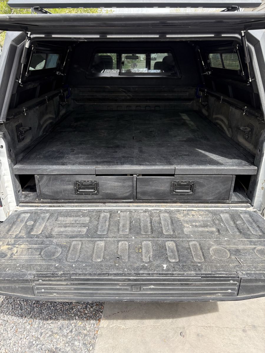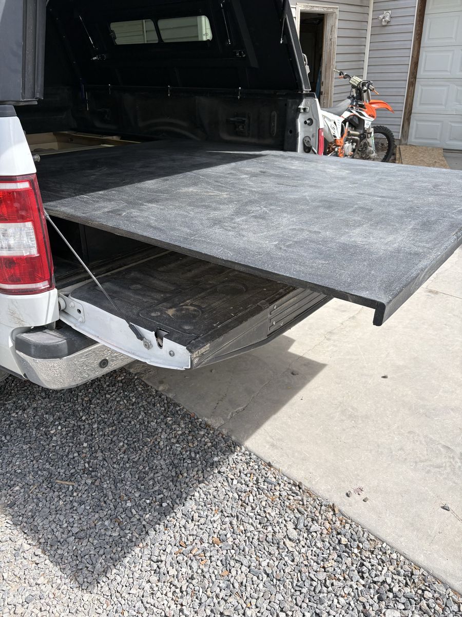 Not actually the official Decked brand, hence the price(much cheaper). Just a DIY system I built for a 2019 f150 6.5 ft bed. Has raptor bed liner spray coating. The top platform rolls out to give you easy access to the back. Turned out pretty good actually, but is just a bit of a pain getting it installed. As long as you're fairly adept at building things and putting things together it's not too hard though. And once it's in it's in for good. Well, until you take it out like I did lol. It works great it just didn't serve my purpose for the work I do. It should fit years 2018-2020. Let me know if you want to come take a look at it, and I can explain how it's put together