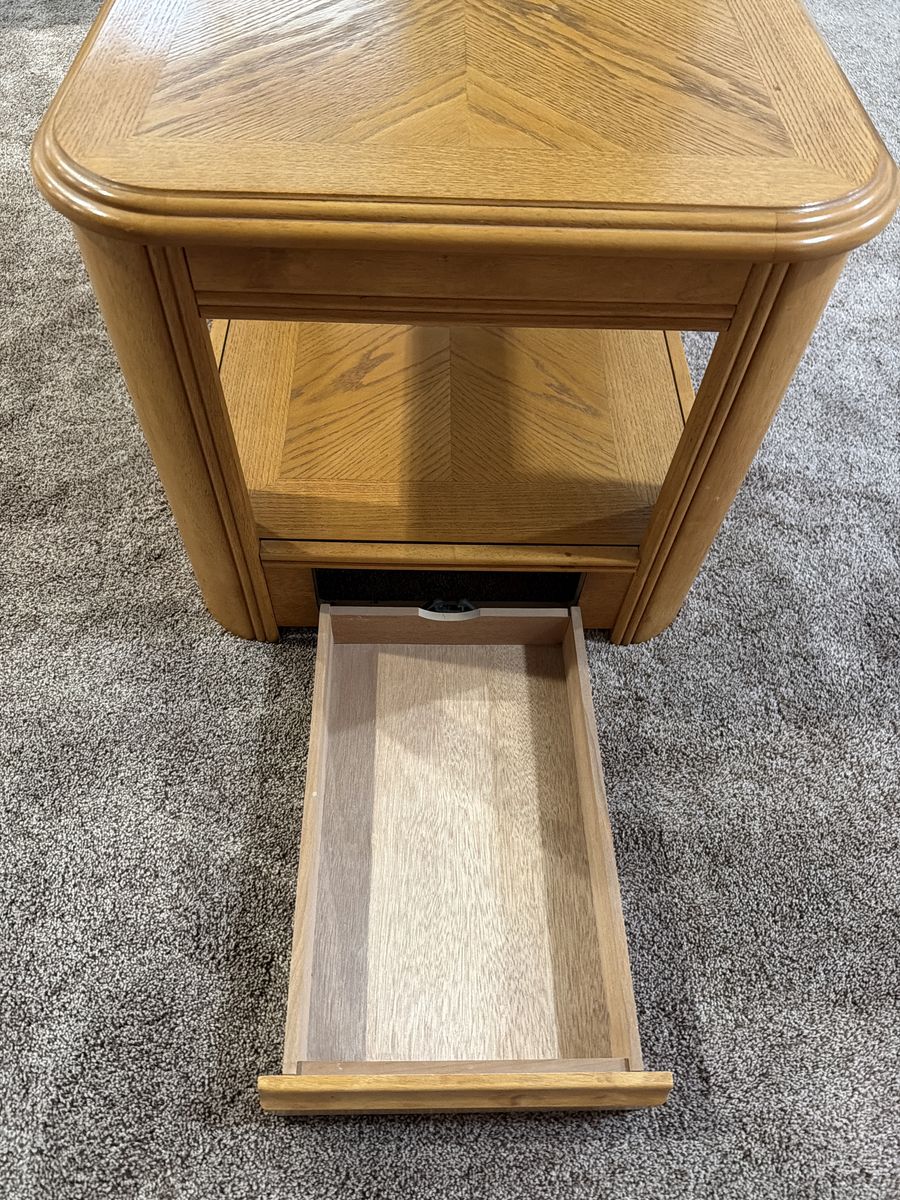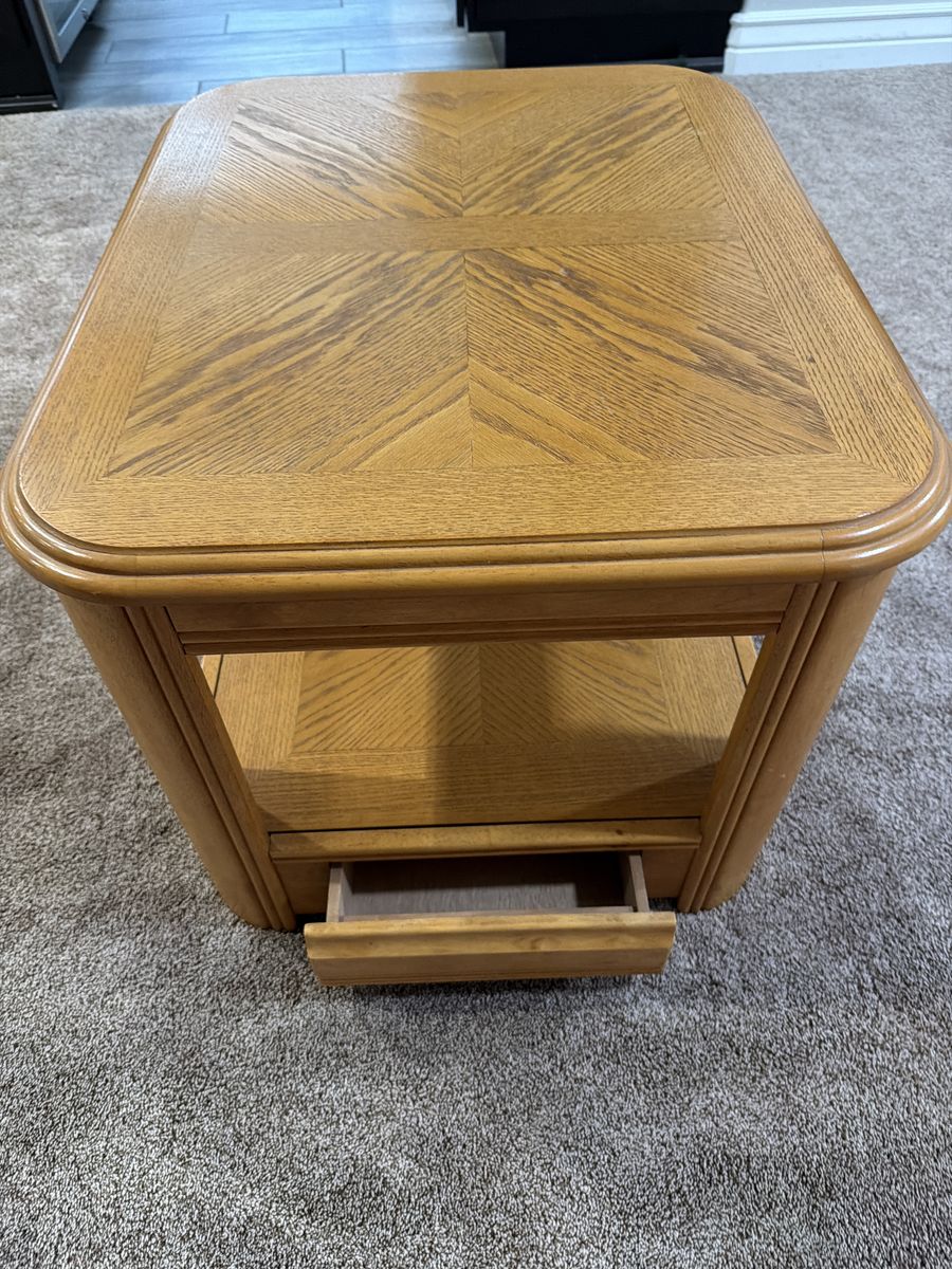 VenmoWooden End/ Coffee table 27" long 20" tall 20" wide. with drawer