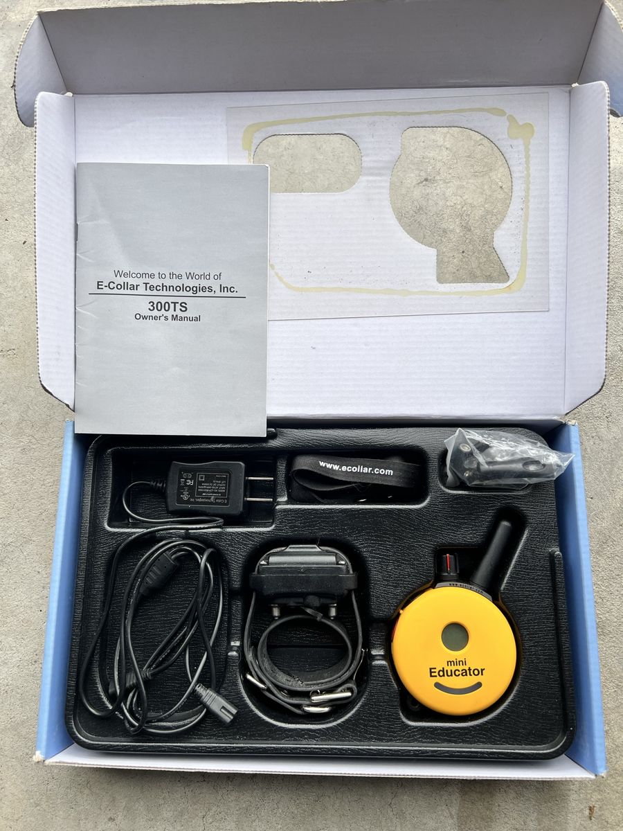 ApplePaymini Educator ET-300 remote dog trainer. This e-collar system has a 1/2 mile range. One dog system, one size fits most. Comes with everything in the box: collar, remote, charger, accessories. Good for training your dog.