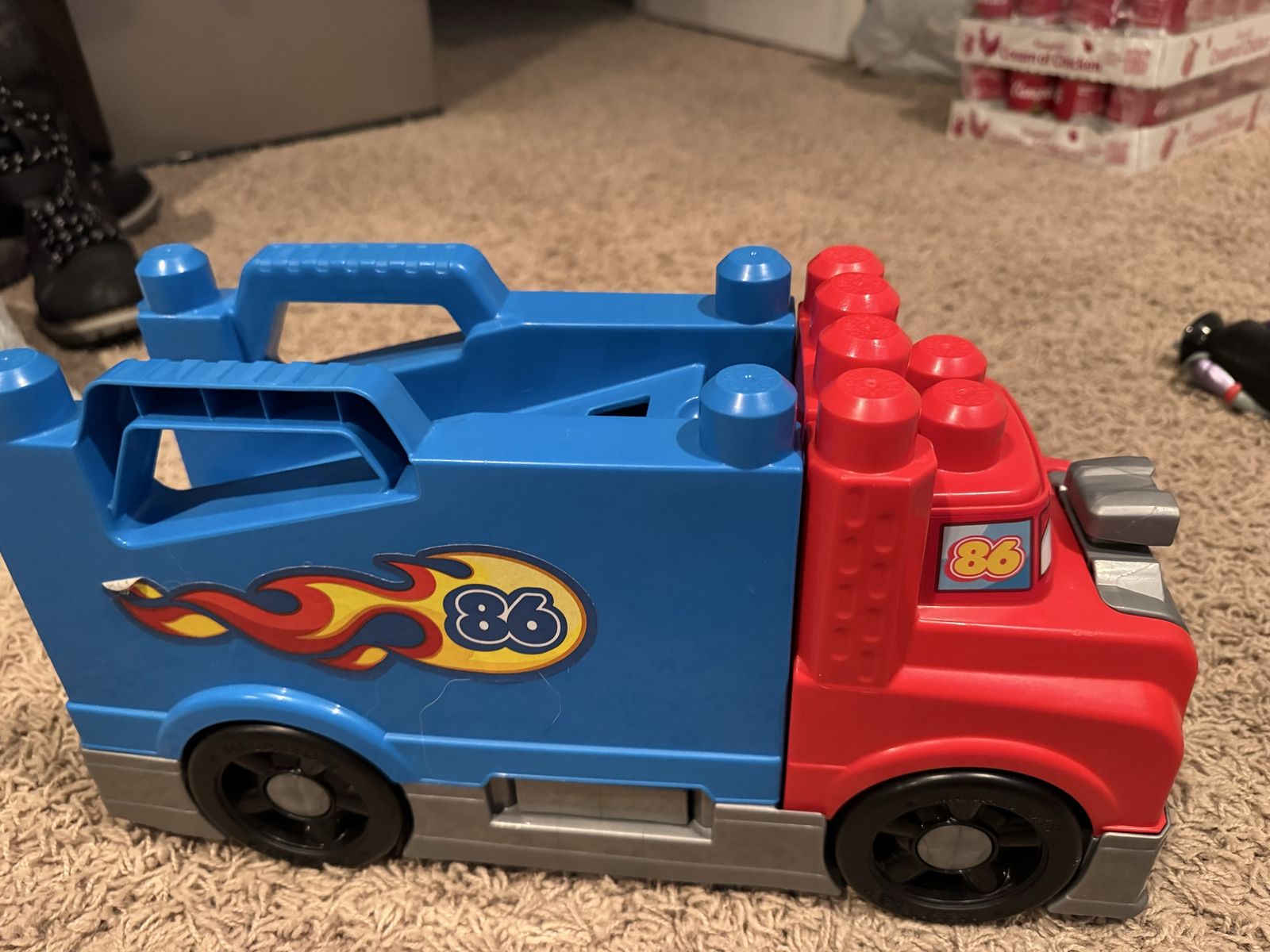 VenmoThis semi truck works with mega blocks that you can build on to it and comes with a car to go under the trailer and a ramp.