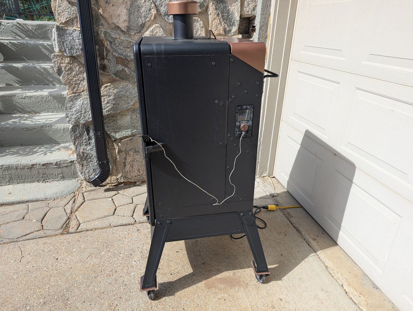 VenmoThe Pit Boss Copperhead 5-Series is a vertical pellet smoker featuring a digital control board and copper-finish accents. This unit has been cleaned and serviced, including the wood pellet auger, and has been tested to reach 400 degrees Fahrenheit.