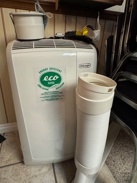 This Portable AC unit was purchased in 2017 for my Mother-in-law who previously did not have AC in her home until 2023 and used it in her bedroom. These units are known for cooling rooms up to 350-500 sq ft. Features digital controls, remote control, and includes exhaust hose and window adapter. Will consider all reasonable offers.