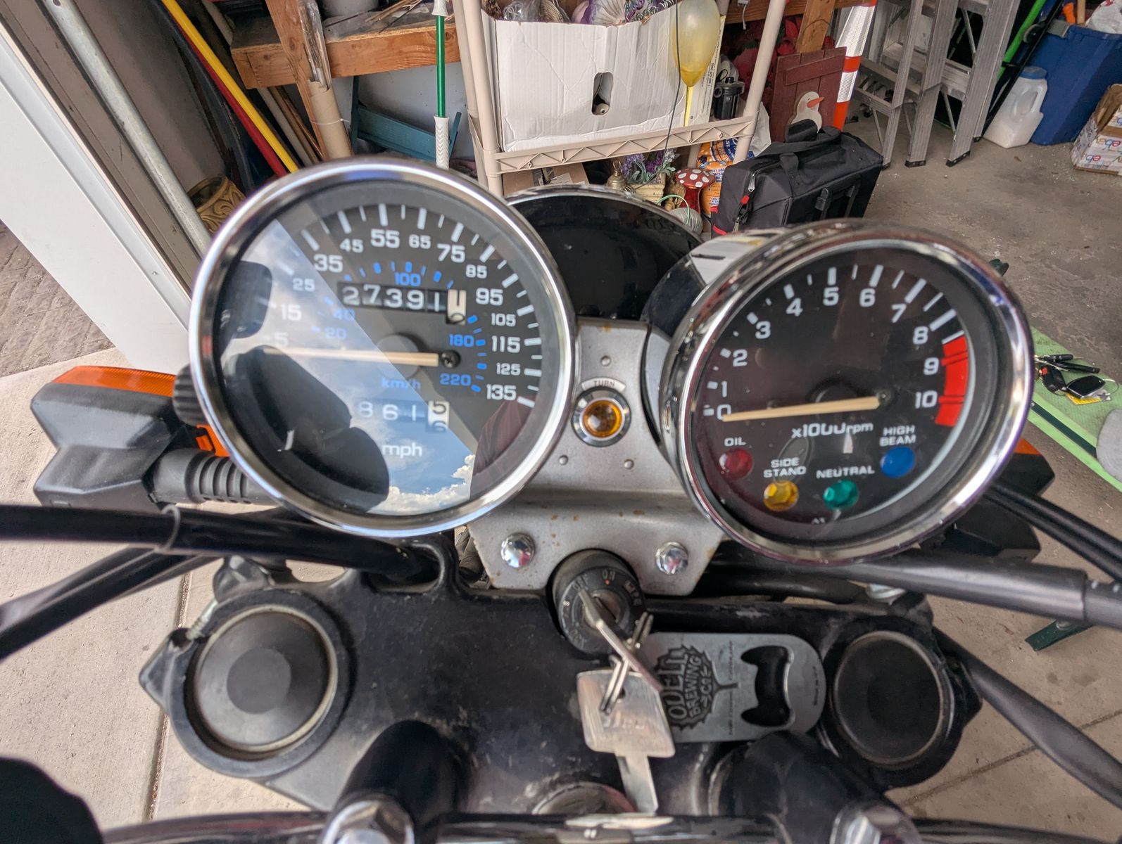 1993 Honda CB750. A little over 27000 origional miles. Very good tires. Battery is only couple years old. Always stored in the garage since we have had it (about 7 years). Starts and rides well. Small dent on the gas tank, and front shock is leaking a bit, both as shown in the pics. Tachometer only works sometimes (been like that since we bought it) Rode it through yellowstone and tetons a few years back without any issues, and I am tempted to do it again this year! Located in Pocatello, ID. Clean Idaho title in hand. Oil changes done only using Valvolin full synthetic motorcycle oil. $2200 or best reasonbile offer. No trades or payments. No help needed in selling it. If you want to test ride it, I need to see motorcycle endorsment shown on your valid drivers license. call or text 8ZERO1 SIX04 30seven3