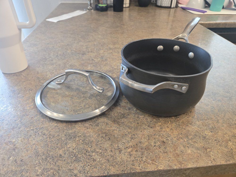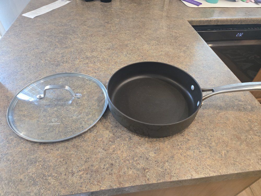 VenmoDurable Calphalon cookware set. Has 5 pots and pans with matching glass lids. Non-stick coating and stainless steel handles. Great for everyday cooking. Cash or Venmo. Must come pick up.