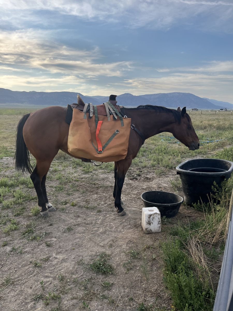 VenmoApproximately 8-9 years old. Sound. 15 hands. Used as trail horse and ponied as pack horse. Trailers easy. Stands well for farrier. Excellent hard feet. Can be harder to catch in pasture. Never bucked. Rides in hackamore.