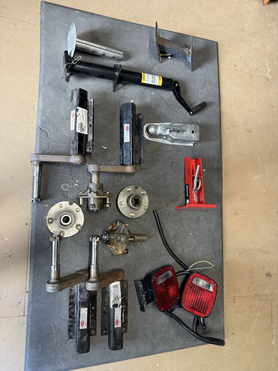 VenmoAlmost everything you would need to build a trailer. Steel Torsion Axles (4 of them) Hubs Lights Tongue jack Wheels (only 2) Spare tire mount 2” coupler The steel is cut so that the trailer could be 58” or 60” wide and 10 ft long. Includes a 10” piece for an extended tongue. The steel originally cost over $400. Torsion hubs can be very expensive. I think I have spent close to $800 for all of this. Due to back problems and surgery I am no longer able to lift and weld this up. I’m asking $200 for all of it. It’s ready to load up. I might consider selling each of the components separately so make an offer if interested Located in Midvale/Ft Union area.