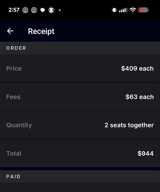 2 Tickets Available $350 (Paid $472 each after fees — save big!)