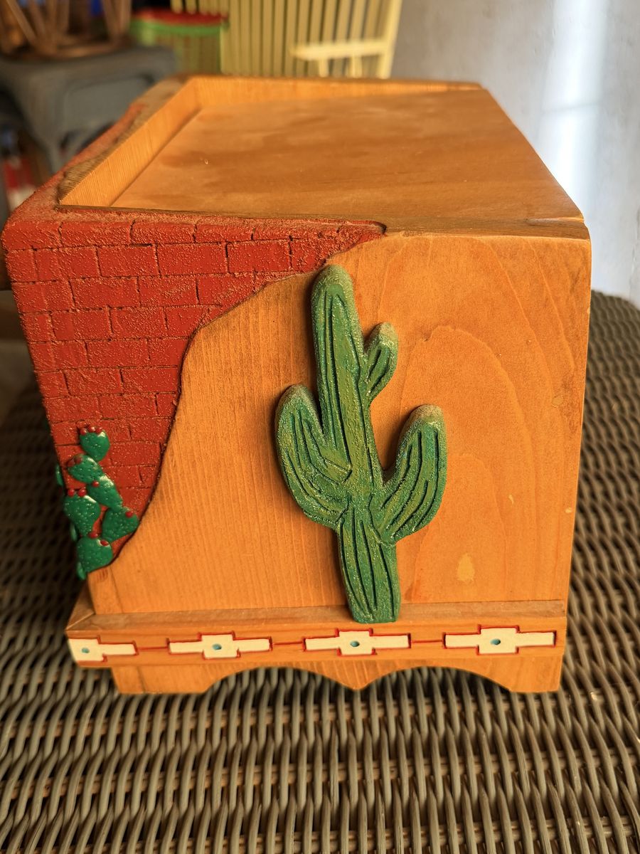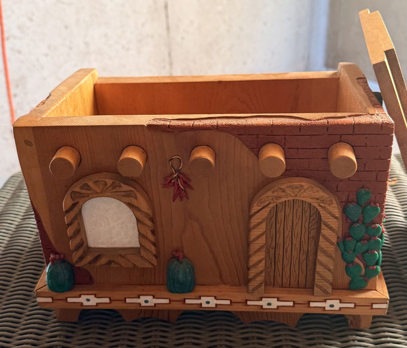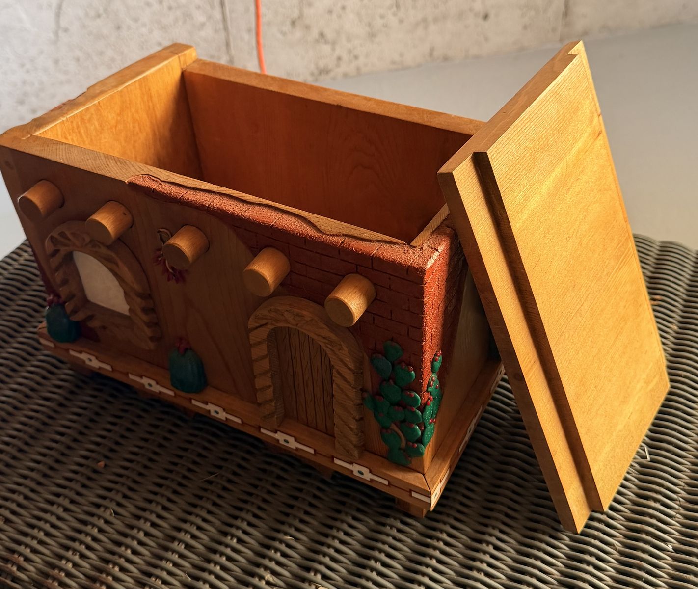 A handmade keepsake diorama of a Southwestern-style adobe "casita".