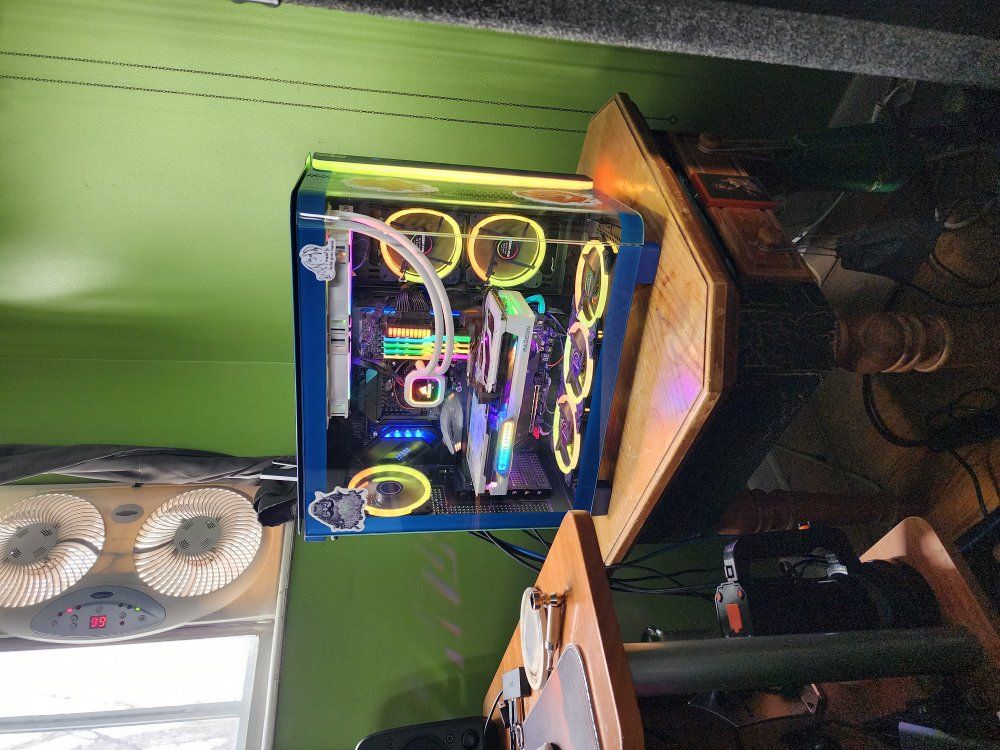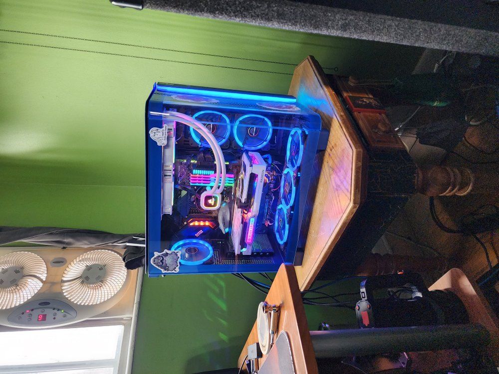 amd 5900xt cpu asrock 16 gb video card 7.1. surround 64 gb ram Gskill 10 gb drives 1000 watt corsair power supply custom lighting runs great ready to go.