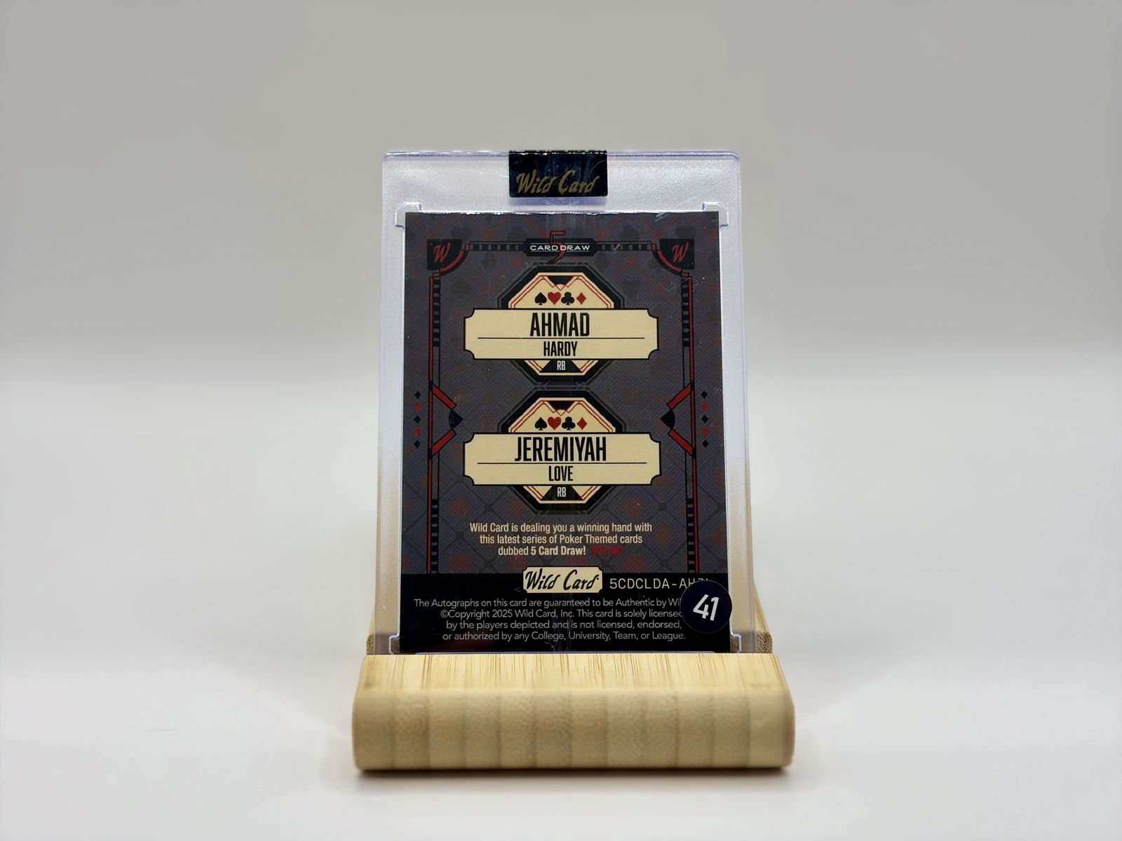 VenmoRare 1/1 Dual Autograph Prospect Card You are bidding on a truly unique piece of football history: a 2024 Wild Card 5 Card Draw Dual Autograph featuring two of college football's rising stars, Ahmad Hardy and Jeremiyah Love. This is the Pink Parallel and is a true 1/1 (One of One), as indicated by the "1/1" stamp on the right side of the card. This is the only version of this specific card in existence. Key Highlights: Dual On-Card/Sticker Autographs: Features bold blue ink signatures from both athletes. Ahmad Hardy: Standout Running Back (RB) with high NFL draft potential. Jeremiyah Love: Dynamic playmaker for Notre Dame, a highly watched prospect. Condition: The card was pulled and immediately placed in the magnetic one-touch holder shown in the photos. It features sharp corners and clean edges (see high-res photos for details). Authenticity: Part of the Wild Card "PRC" (Pre-Rookie Card) series, known for featuring future stars before they hit the professional stage.