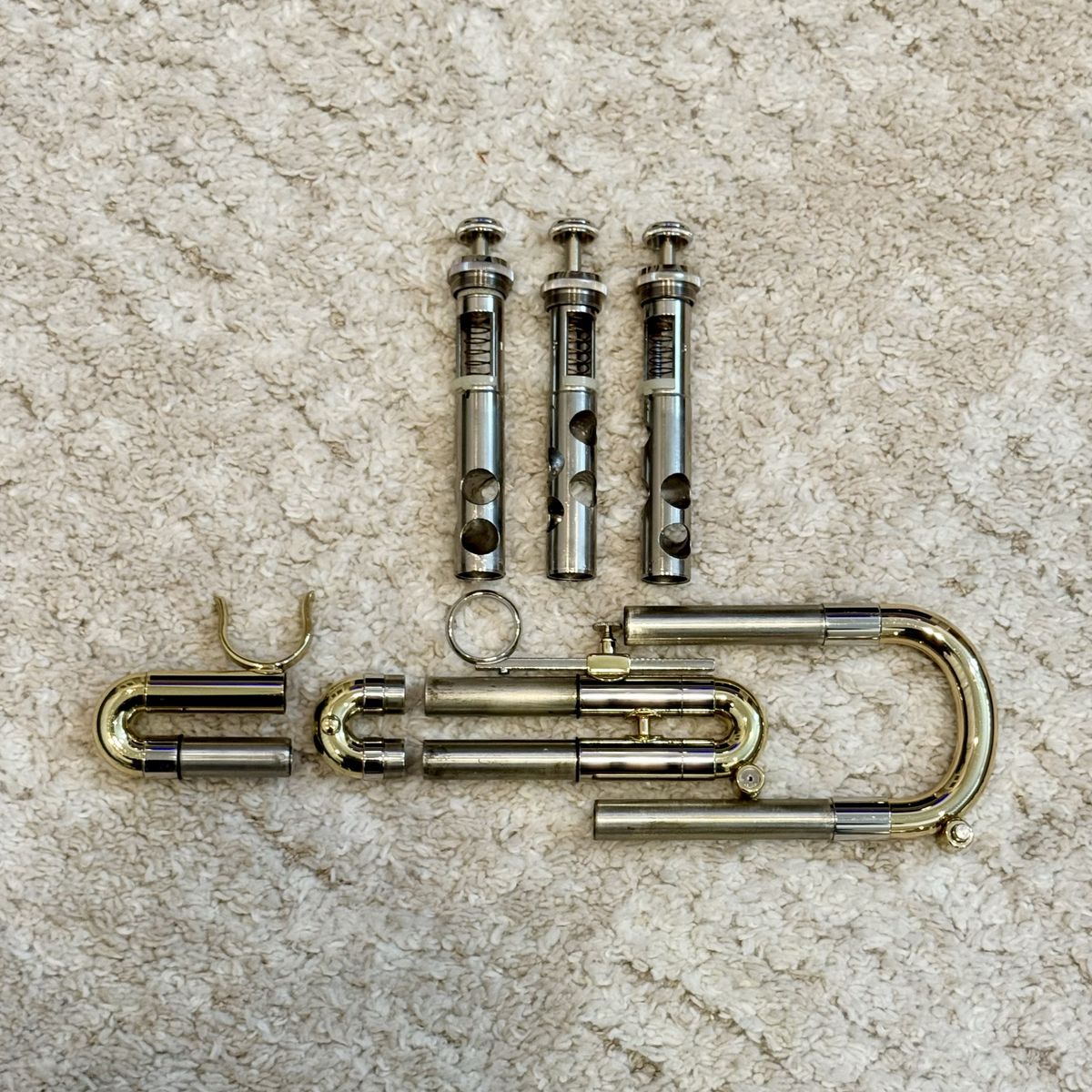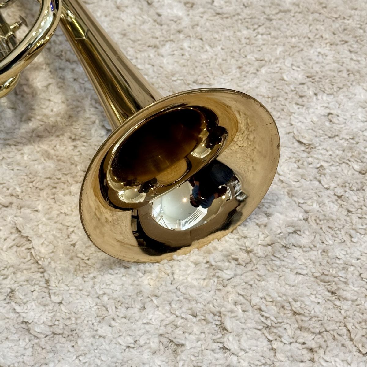 .460 bore, 4 3/4” rose brass bell and lead pipe. A legit USA-made horn that punches well above typical student trumpets.