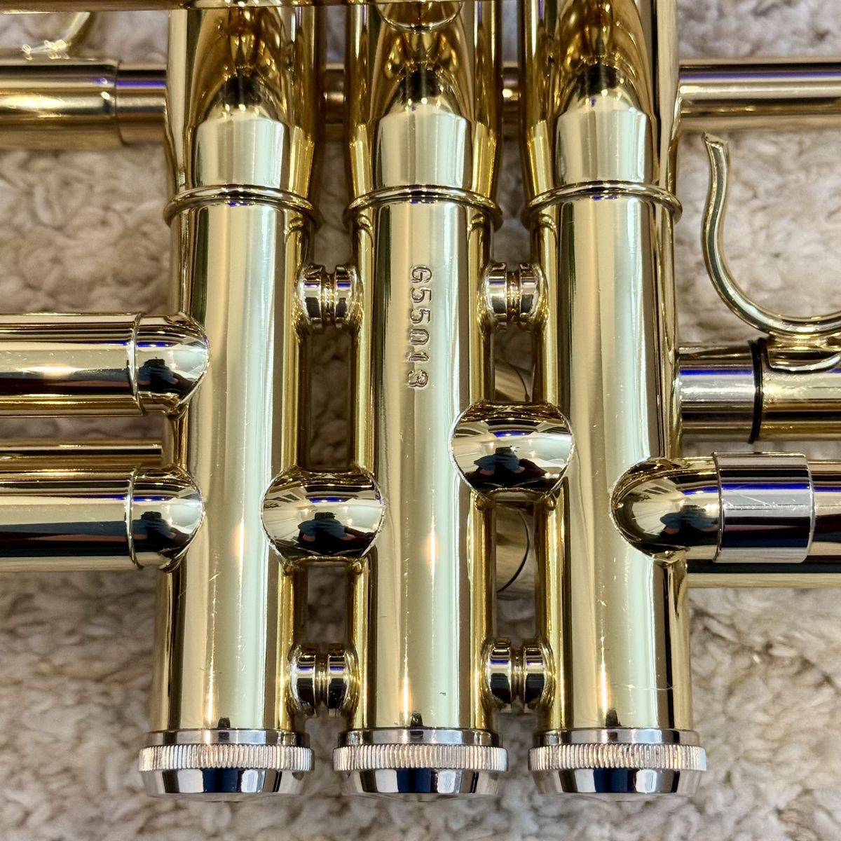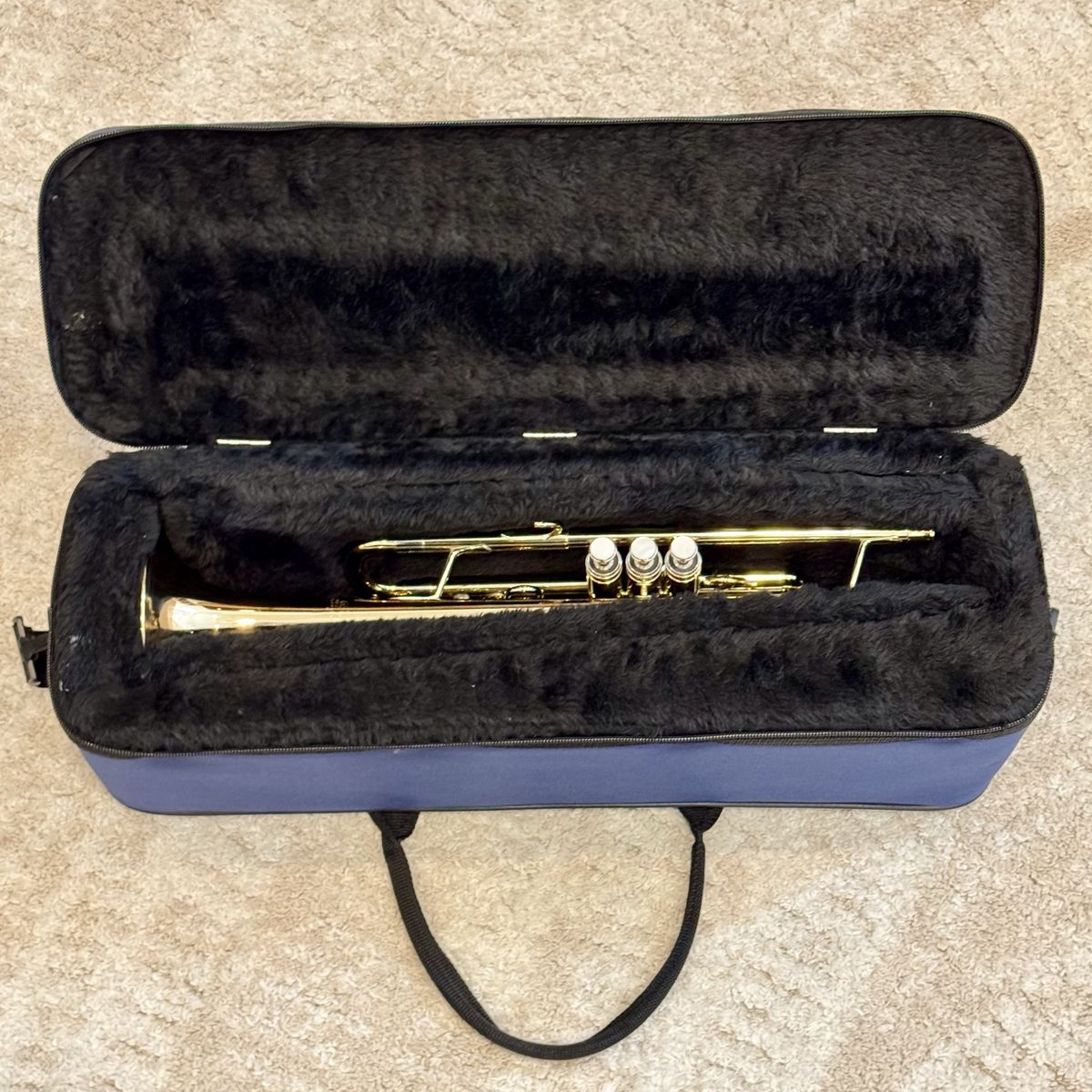 VenmoGetzen 490 Bb trumpet, made in Elkhorn, WI. Lacquer finish in very good shape. Minor surface wear, no dents. Valves are smooth, all slides move freely. Includes mouthpiece and soft case.