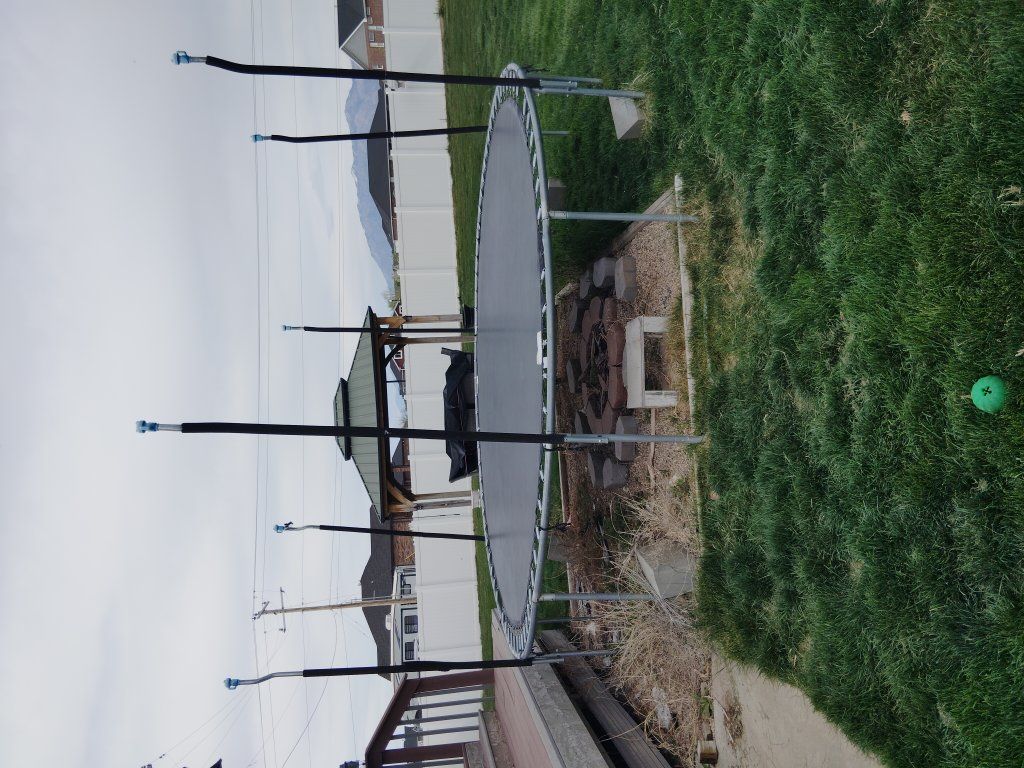 14 ft diameter trampoline for sale it has 2 missing springs and the cover that covers the springs is pretty tore up but I do have it. the netting that goes around it is in decent shape. Asking $100 OBO If interested call/text Brandon 303 913 1016