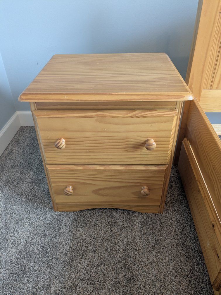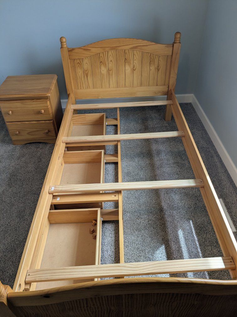 VenmoDarling wood Captain's bed with matching nightstand. Provides lots of storage!