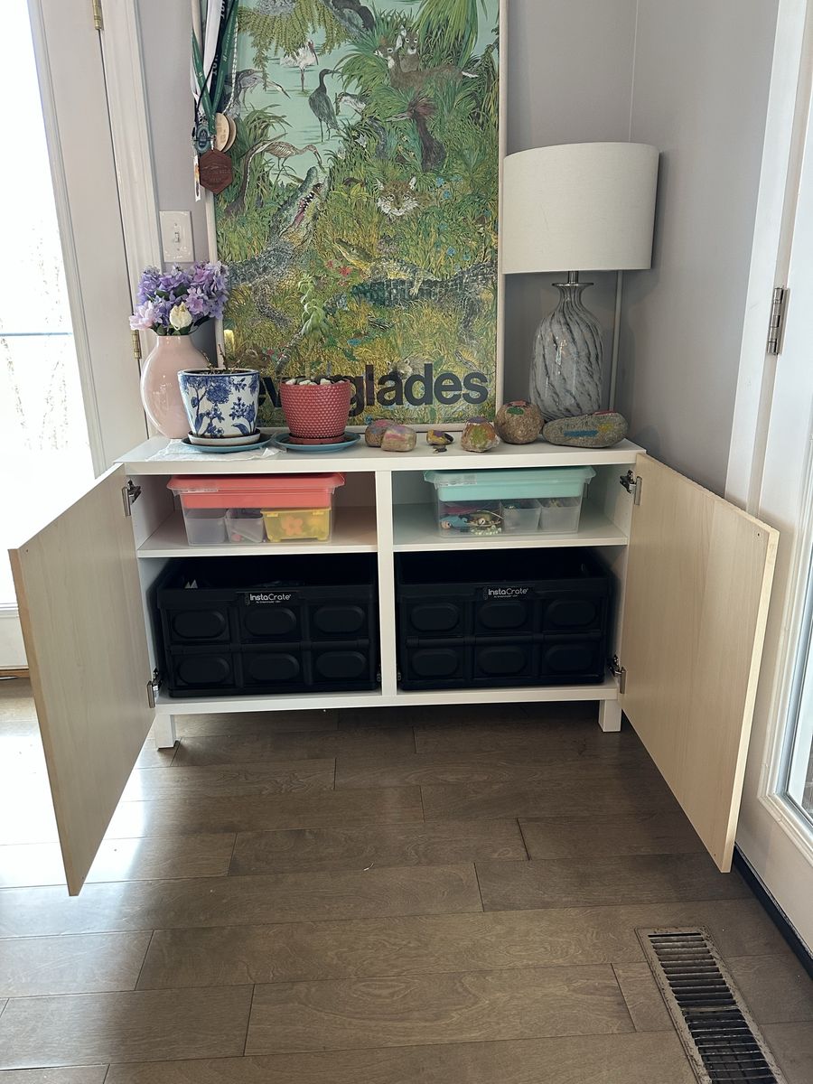 VenmoThe cabinet is in great condition and has plenty of storage space. I originally used it as a tv stand. I also have the other two shelves and pegs for added shelf space. Link to the original Ikea product here: https://applink.ikea.com/tY8M9r9M4w--29209829--us--en. Asking $80 for it.
