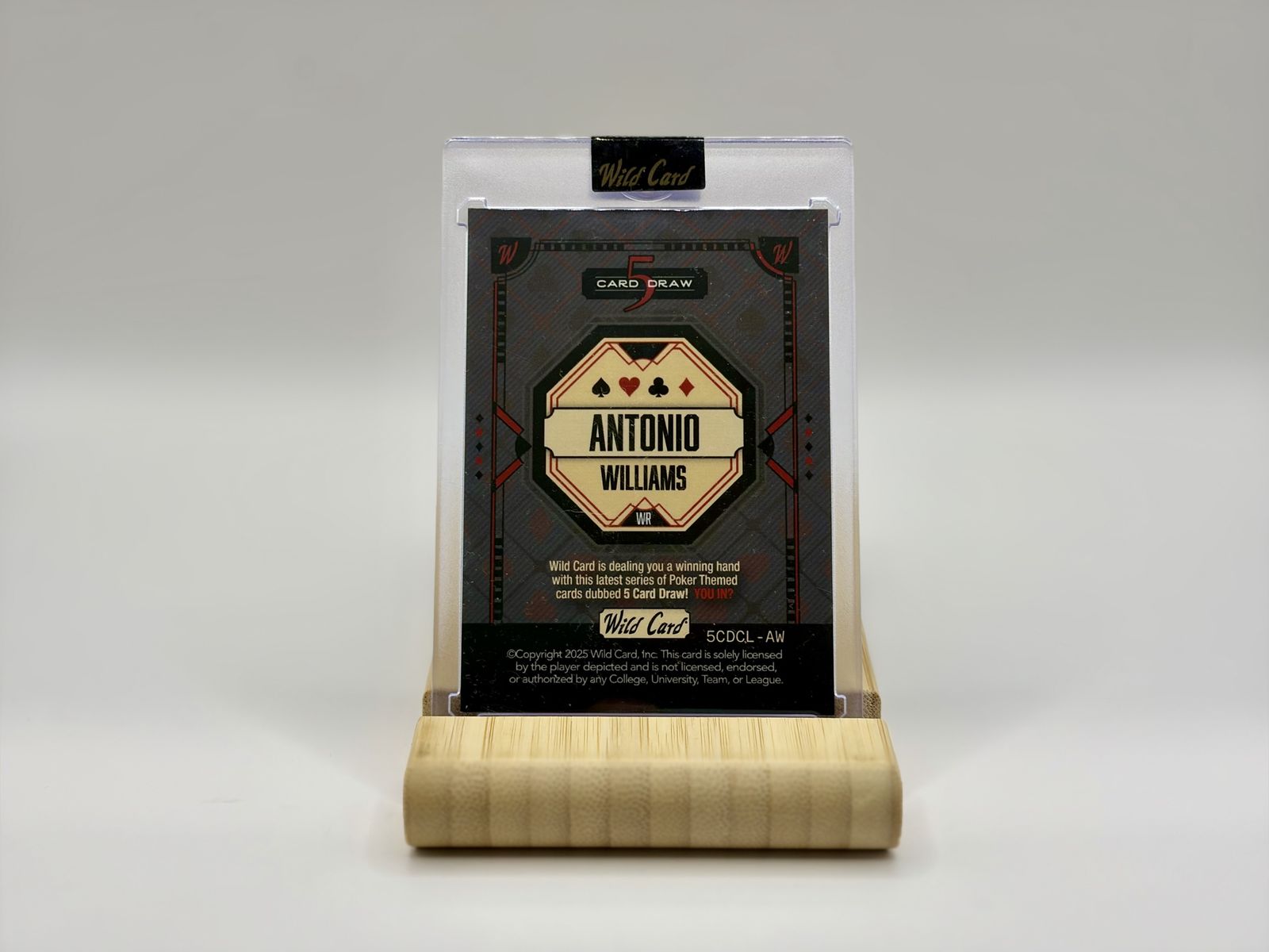 VenmoFor sale is a rare 1/1 (One of One) Antonio Williams football card from the Wild Card "5 Card Draw" series. This is a unique Purple Parallel featuring the star Clemson wide receiver.\