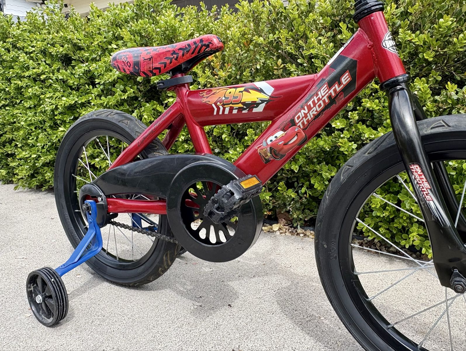 16” Lighting McQueen bike that’s ready to ride. Comes with training wheels. I have also added $20 worth of self sealing slime tubes to it as well so that you don’t have to worry about getting flat tires. Bike has been kid used so it has some of the normal scuffs on it that you might expect. Located in Orem. Prefer cash. Thanks