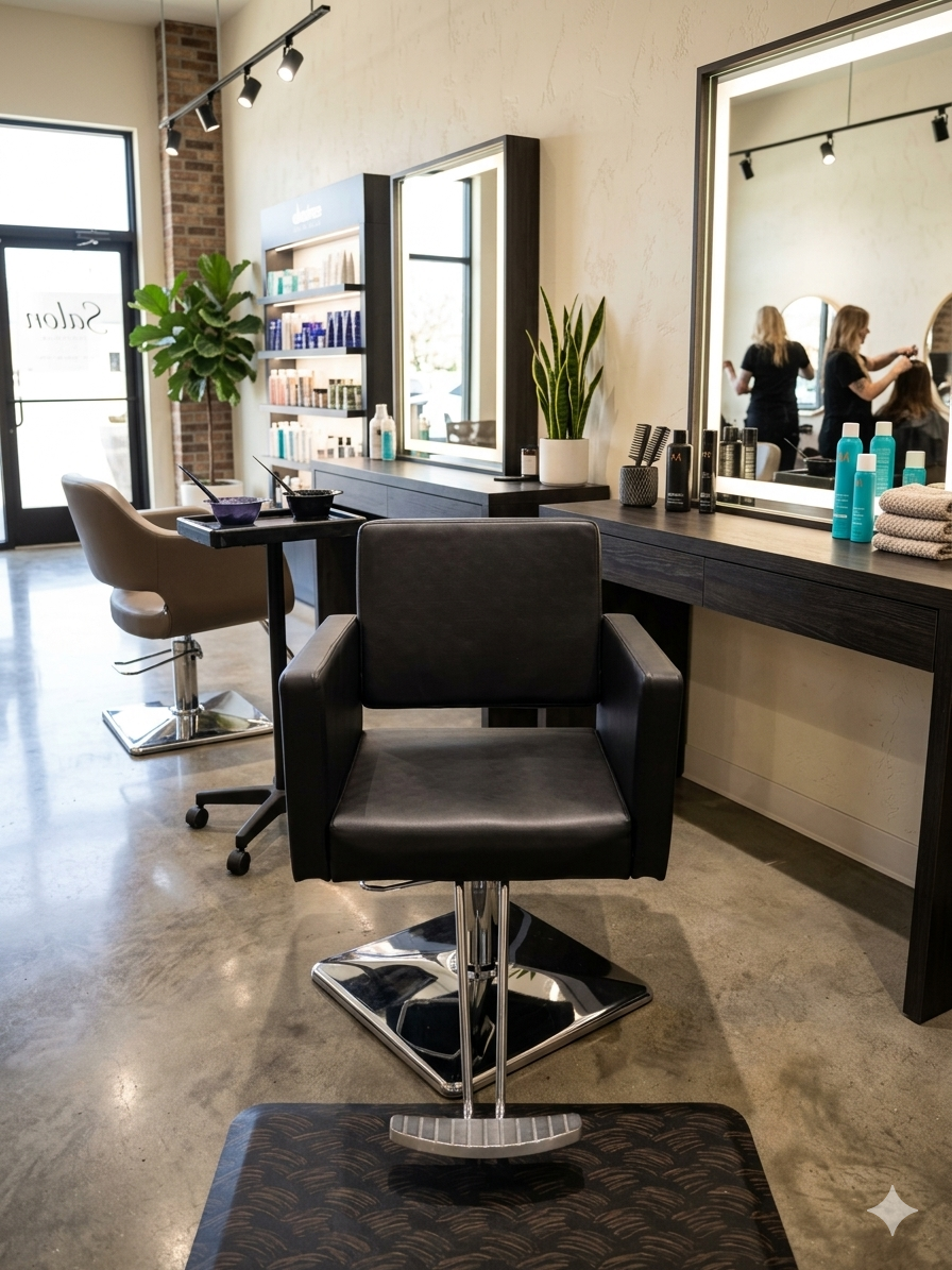 ZelleOne year used salon chair. Fully functioning with minimal wear. No tears in the fabric. The foot pump works great and the chair spins without any issues.