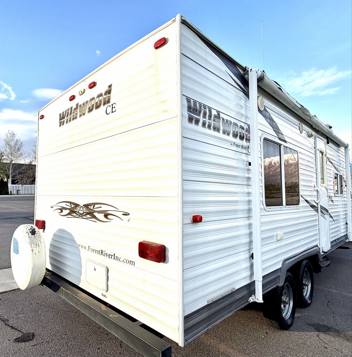 2010 forest river wildwood ce 22’ sleeps 6 with front private bedroom with walk around queen bed A/C awning 3 burner stove oven microwave fridge electric tongue, Jack every thing works no leaks or damage good tires clean title in hand