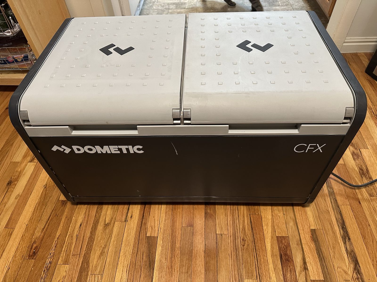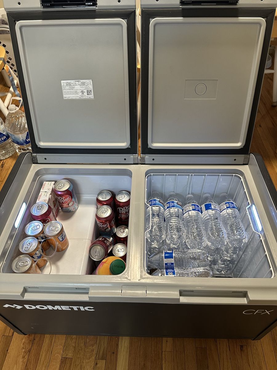 Cooler is in great condition and functions flawlessly. The cfx line is the top of the line, high end option when it comes to compressor coolers. It features WiFi and Bluetooth connectivity and dual zone compartments that you can control in the app. It comes with the included basket and both ac and dc connectors.