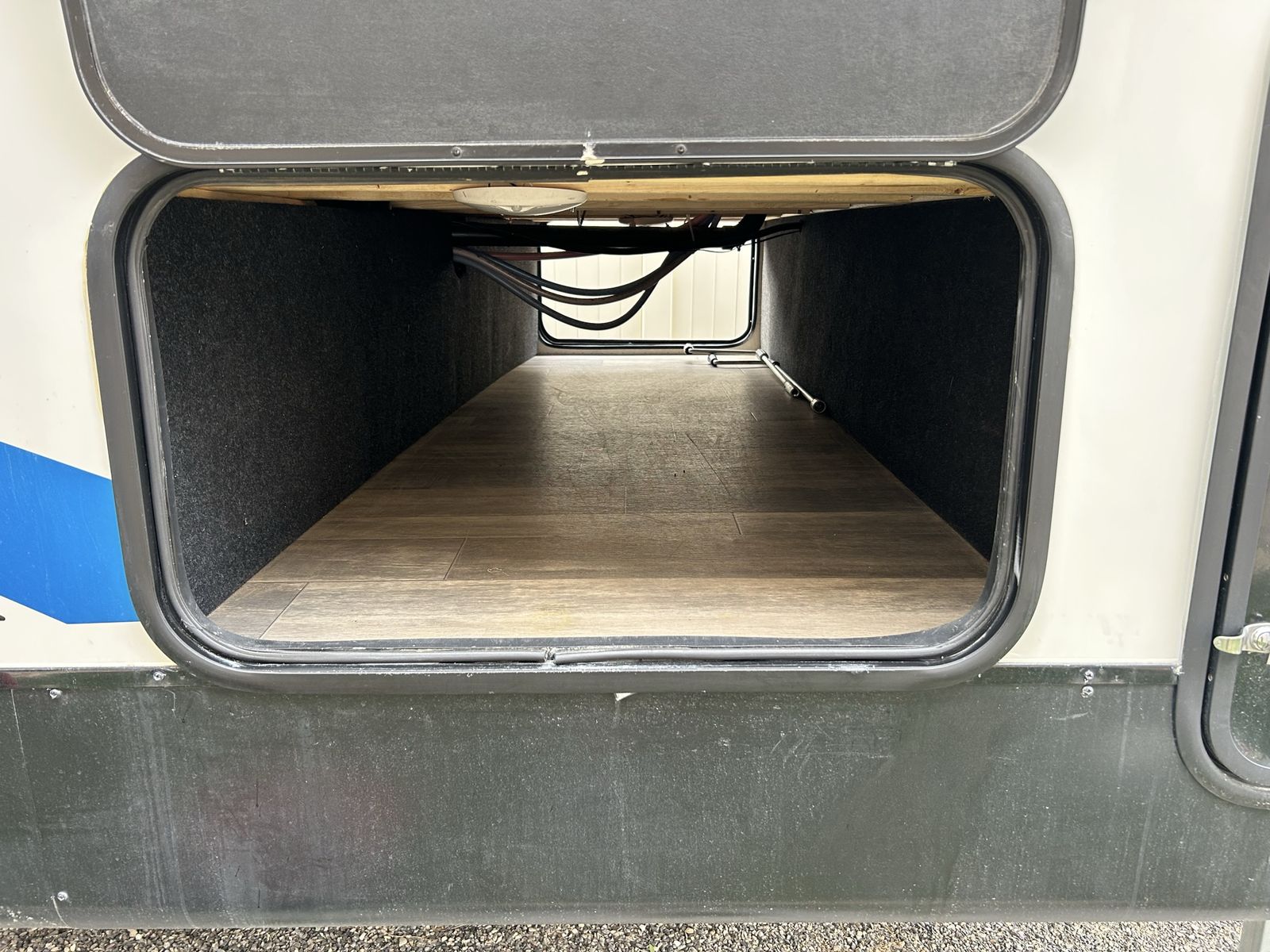 Fresh Water Capacity 46 gal Gray Water Capacity 38 gal Black Water Capacity 38 gal Propane Capacity (gal / lbs) 9.4 / 40 Water Heater Tank 6 gal Leveling jacks Power front and rear Garage floor measures 66” wide by 16’ long