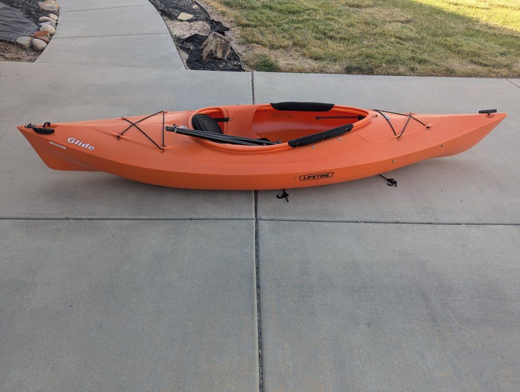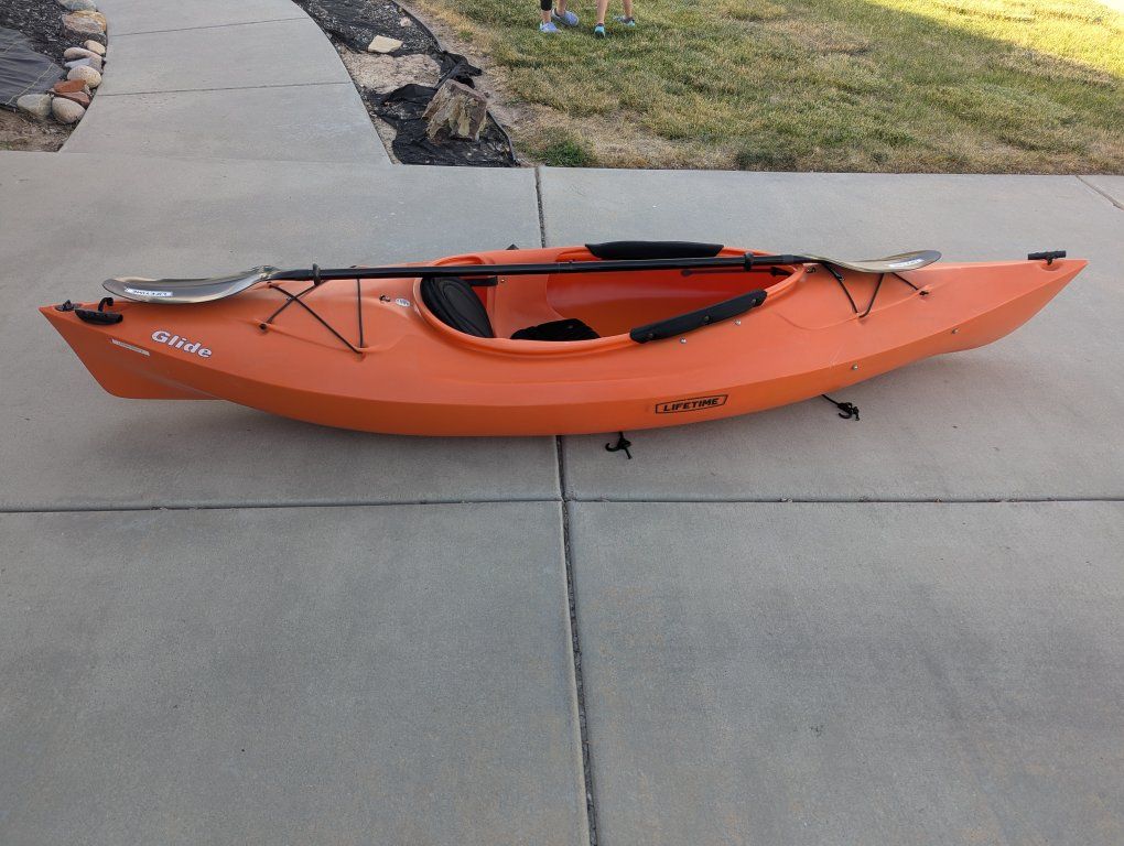 VenmoLifetime Kayak 9'6" in length, orange colored and in his shape, only used once. The paddle is included.