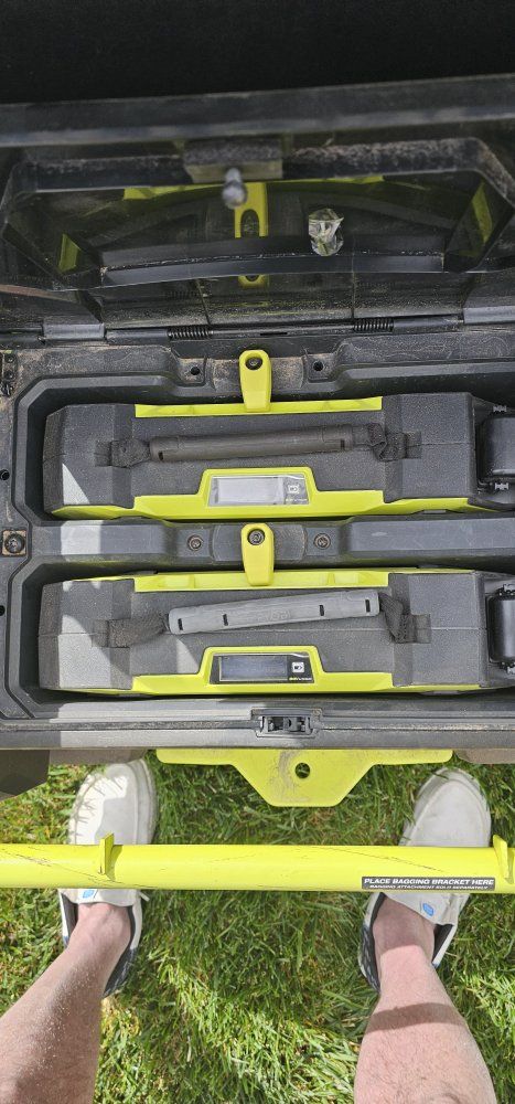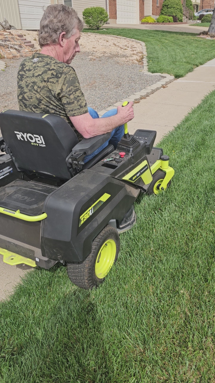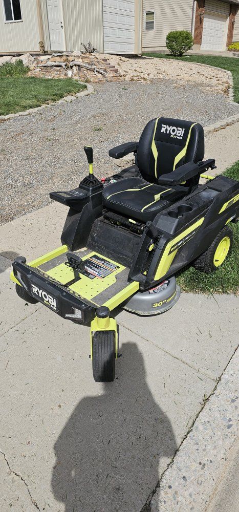 like new ryobi Z30Li with only 23 hours, I bought this last year and it doesn't work very well on sloped yards. So I went out and bought me a walking mower. This one's up for sale now. These don't come around very often.