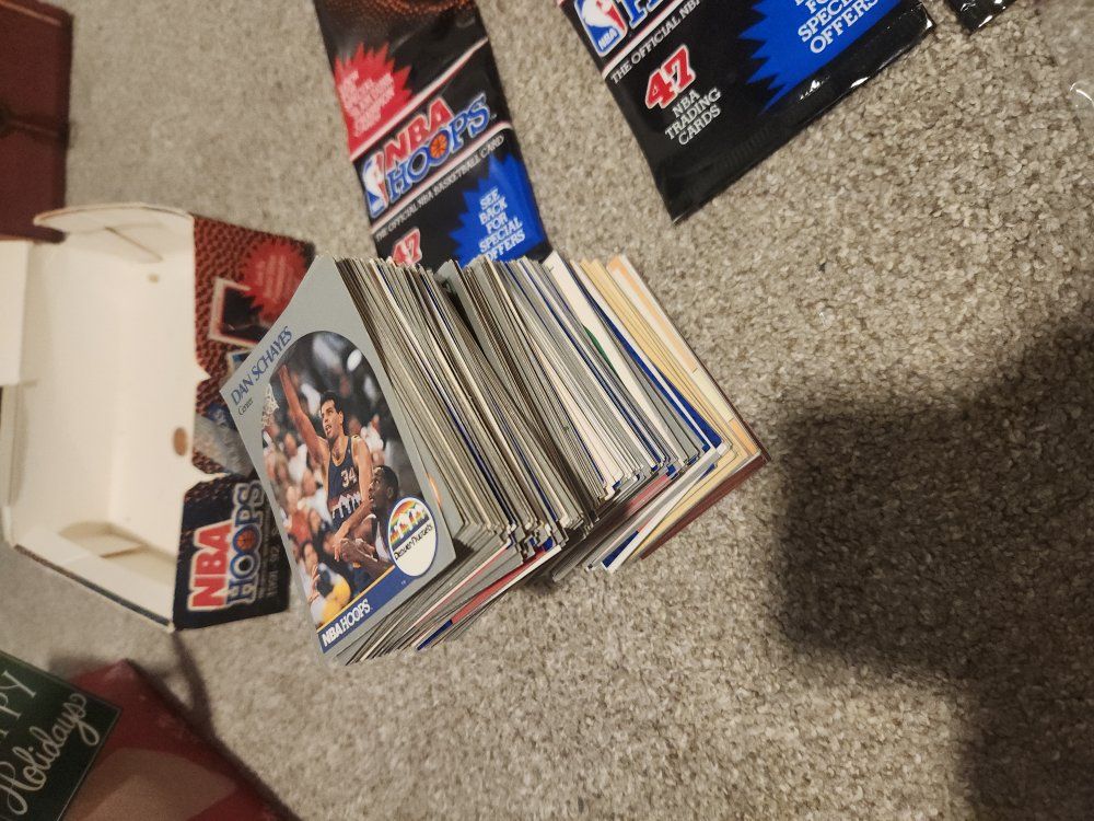 NBA Card Collection 50 Sealed Packs: 1990-91 NBA Hoops & Fleer (all unopened). 250+ Loose Cards: Includes stars and Hall of Famers. Key Cards: Michael Jordan (multiple), Hakeem Olajuwon, Patrick Ewing, David Robinson, Chris Mullin, Clyde Drexler. Utah Jazz: Mark Eaton, Darrell Griffith, Mark Price. Price: $210 Location: South Jordan