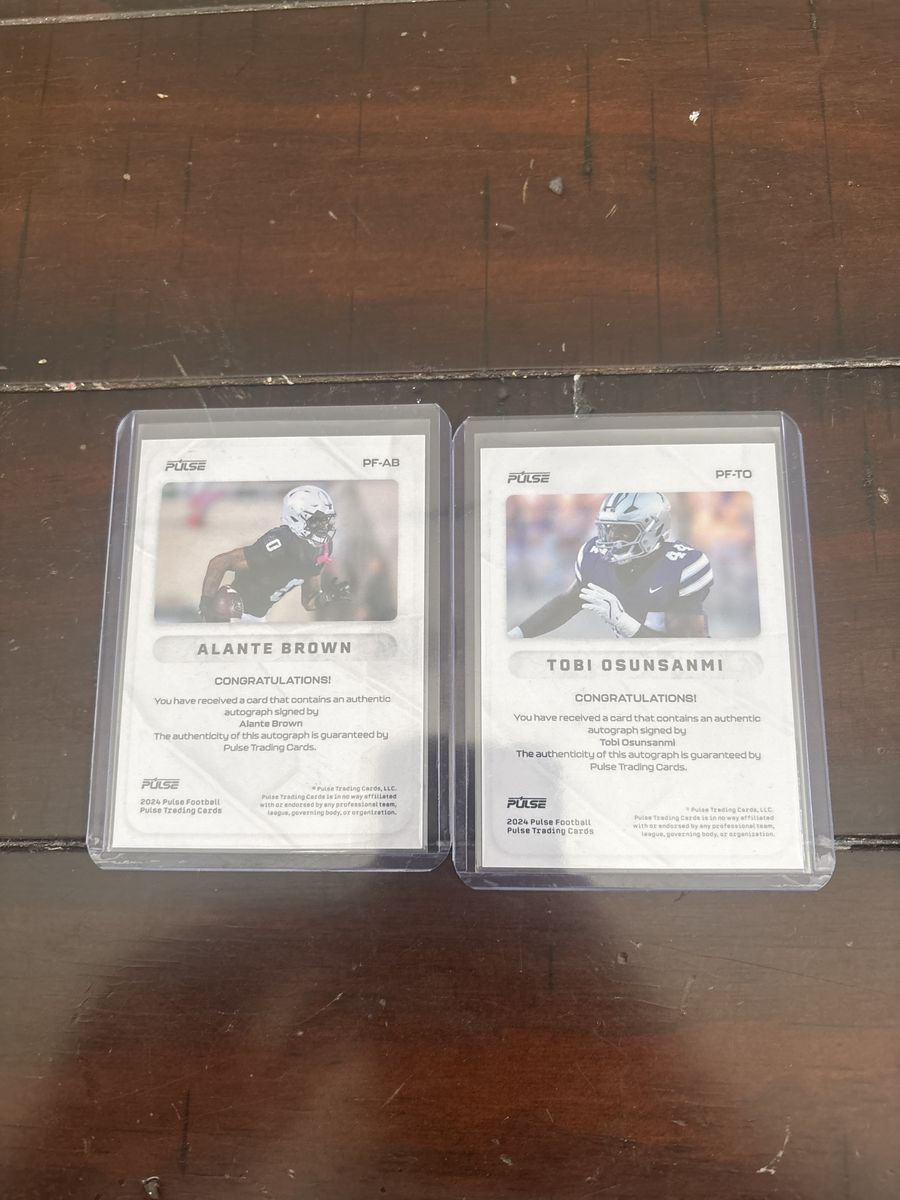ApplePayTwo perfect condition autographed numbered college player cards that came from a pulse mystery pack.