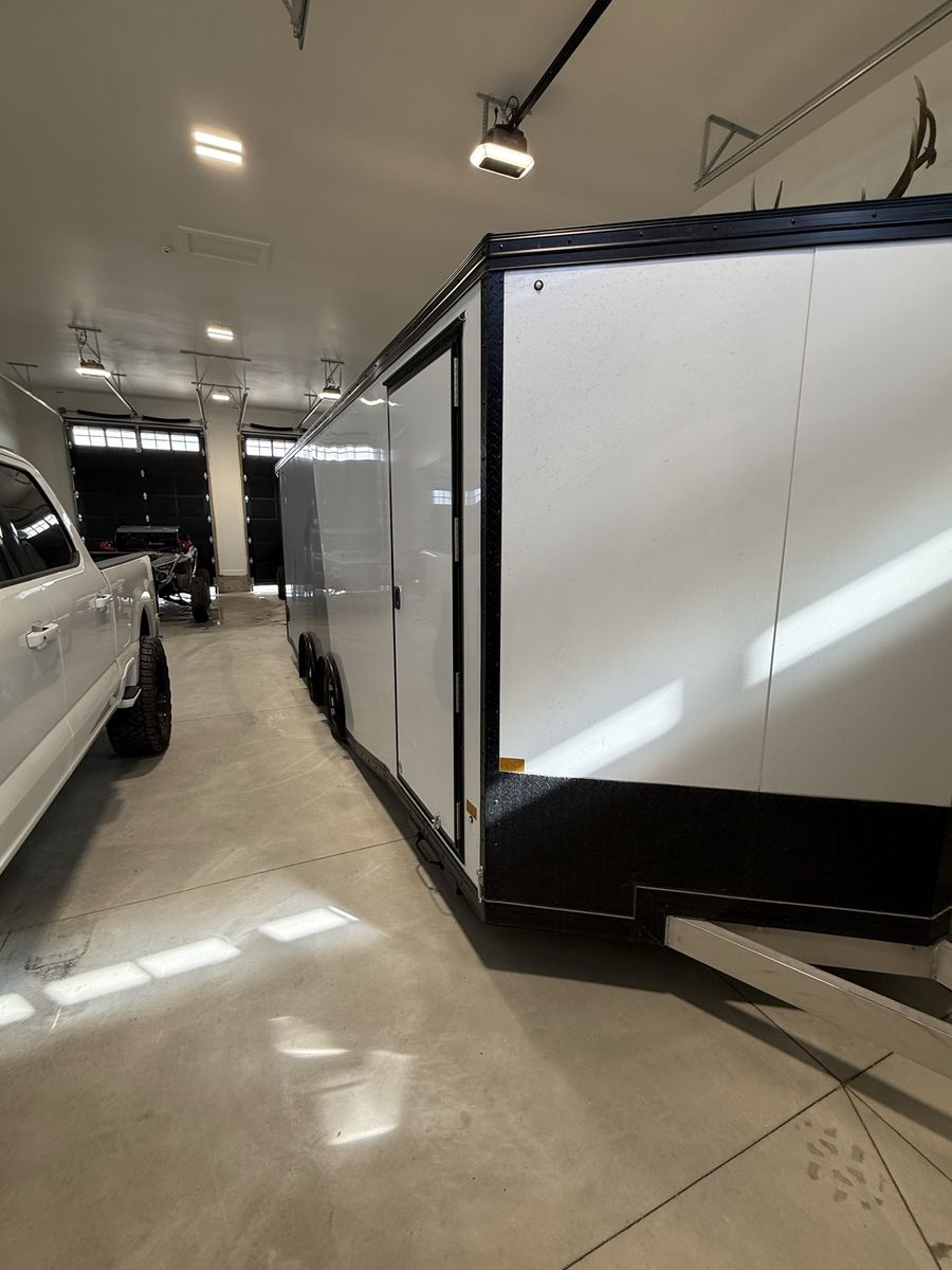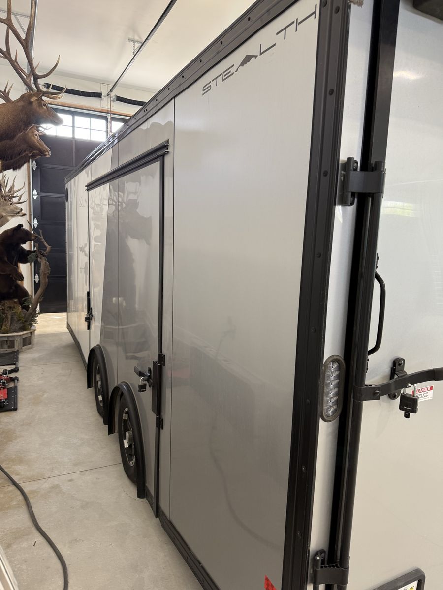 20 foot all aluminum auto hauler enclosed trailer with side hatch door and removable interior fenders. Lower and upper Cabinets in the v- nose. Call Or text Jeremy 801-898-1390