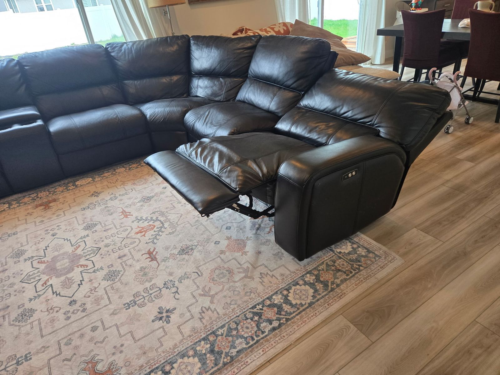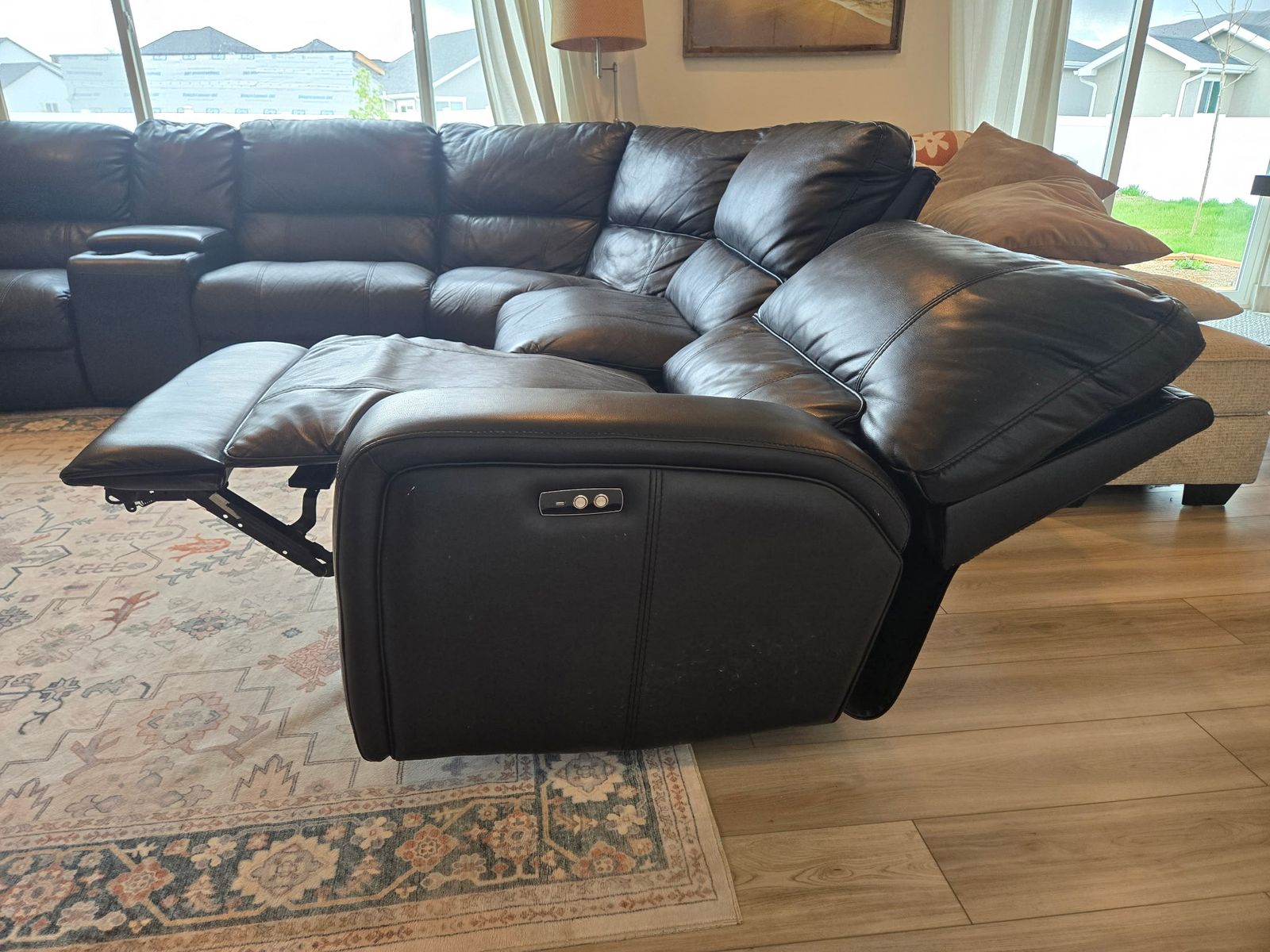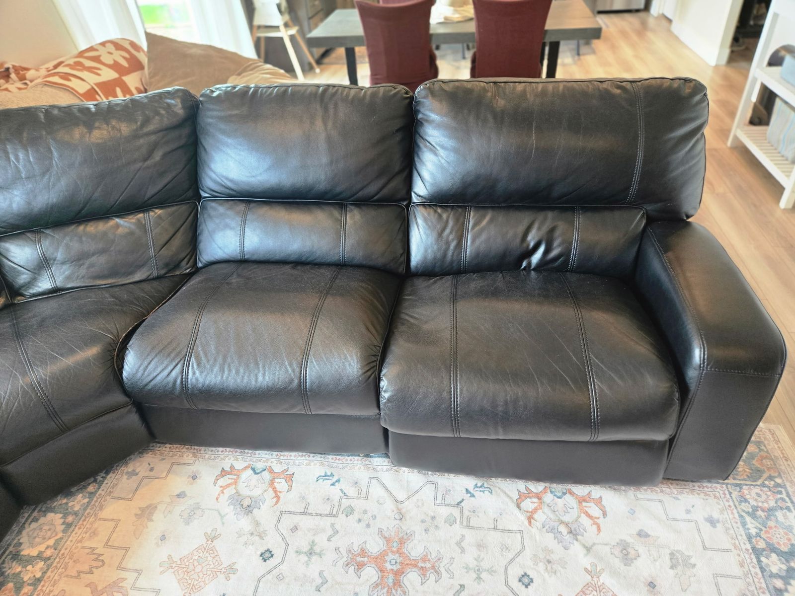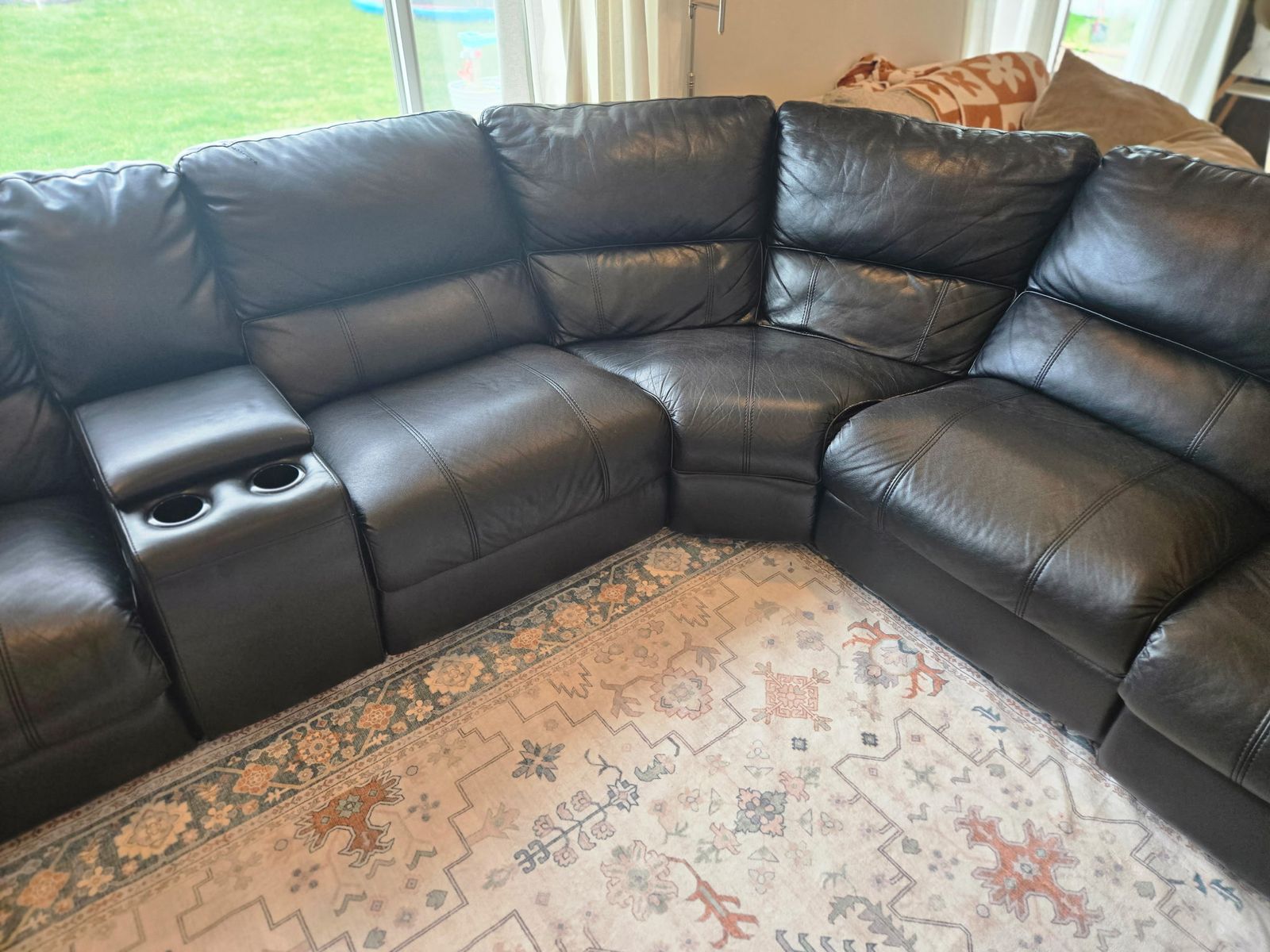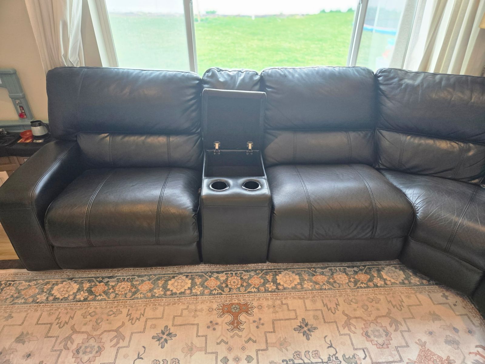 VenmoNice looking leather sectional. Can be configured any way you want. Both arm sections have working electronic recliners.