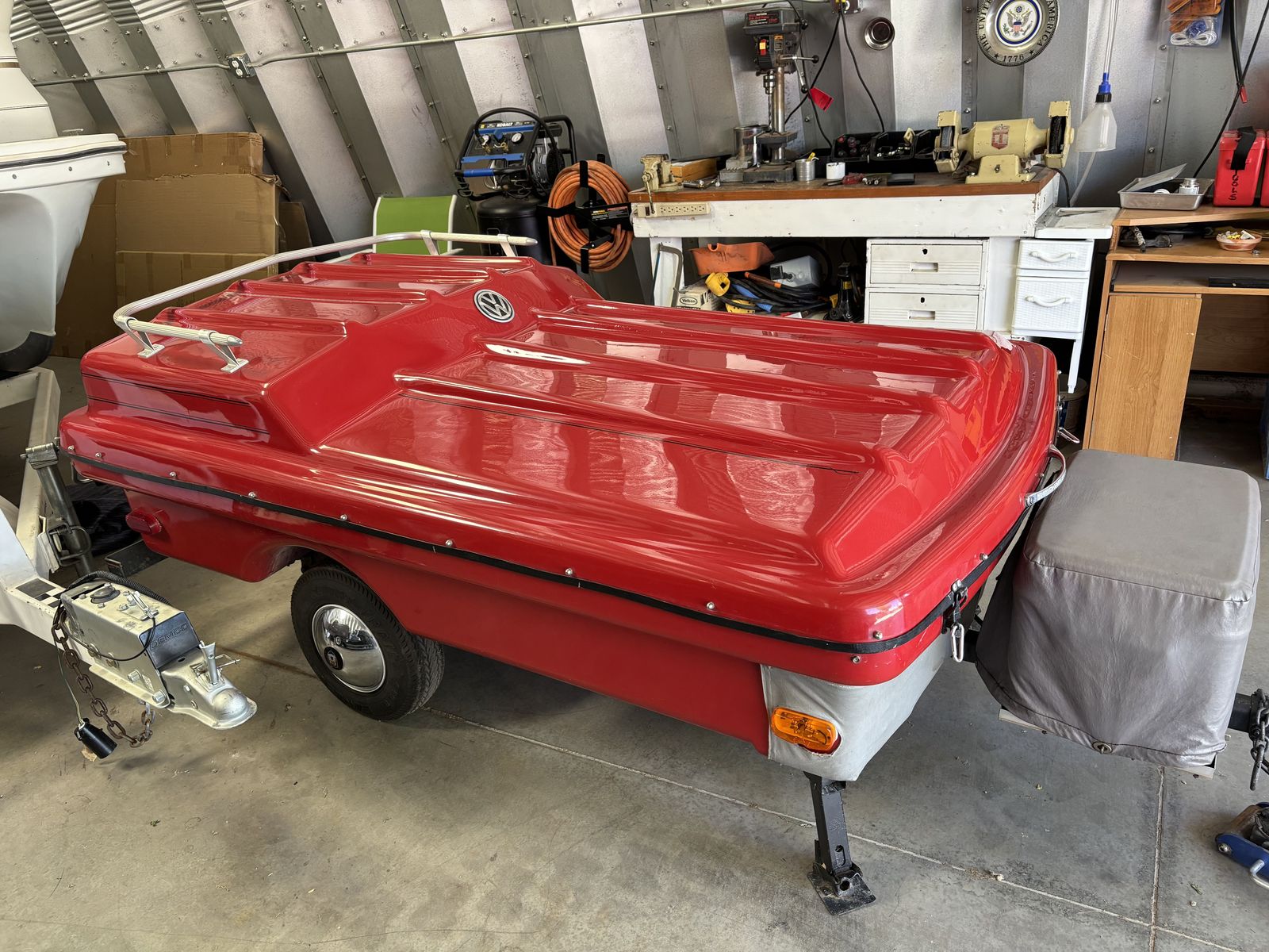 1980S COMPLETE CYCLE KAMP IN GOOD CONDITION. WAS PULLED BY MY GOLDWING. NO LONGER RIDE THEN PULLED WITH MY VW BUG. I ADDED SOME VW BADGES. CANVAS IS IN GOOD CONDITION JUST A LITTLE FADED.